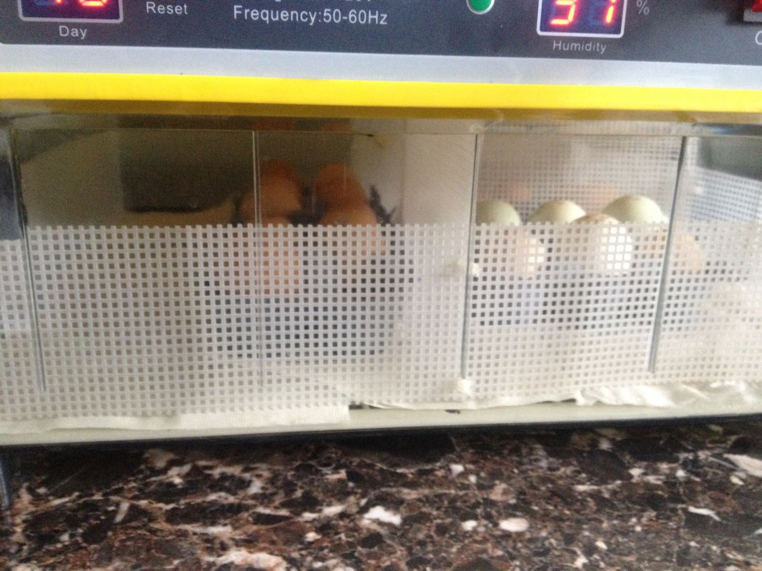 I purchase a Janoel 8-48 incubator on Ebay. It has the clear bottom. Not sure if it is legit. Can not find a serial number, where is it located? Having trouble with the humidity. The reading on the incubator was 10 % lower that the humidity meter I was using. I now have a third meter that reads 10% higher than the meter I was using 20% higher that the incubator. How do I know what is correct. First hatch 10 eggs: 3 healthy and on time out of 6 viable eggs. Second hatch 10 eggs: 1 healthy and on time, 1 helped out afflicted out of 6 viable eggs. On the third hatch of 13 eggs" 2 hatched healthy and on time. I had 8 fully grown with yolk either adsorbed or close to it dead in the shell with a lot of slime around them. The weight loss at 18 days was about 12 % . The air sac was really weird shaped (like a jigsaw puzzle piece) and didn't appear to grow much from day 12 to day 18. My judgement was the humidity was too high. Humidity on my meter was kept around 35% Just started 7 bantam eggs. Will keep the humidity 10% on the incubator, 20% on the old meter, and 30% on the new meter and see what I get. Any suggestions???