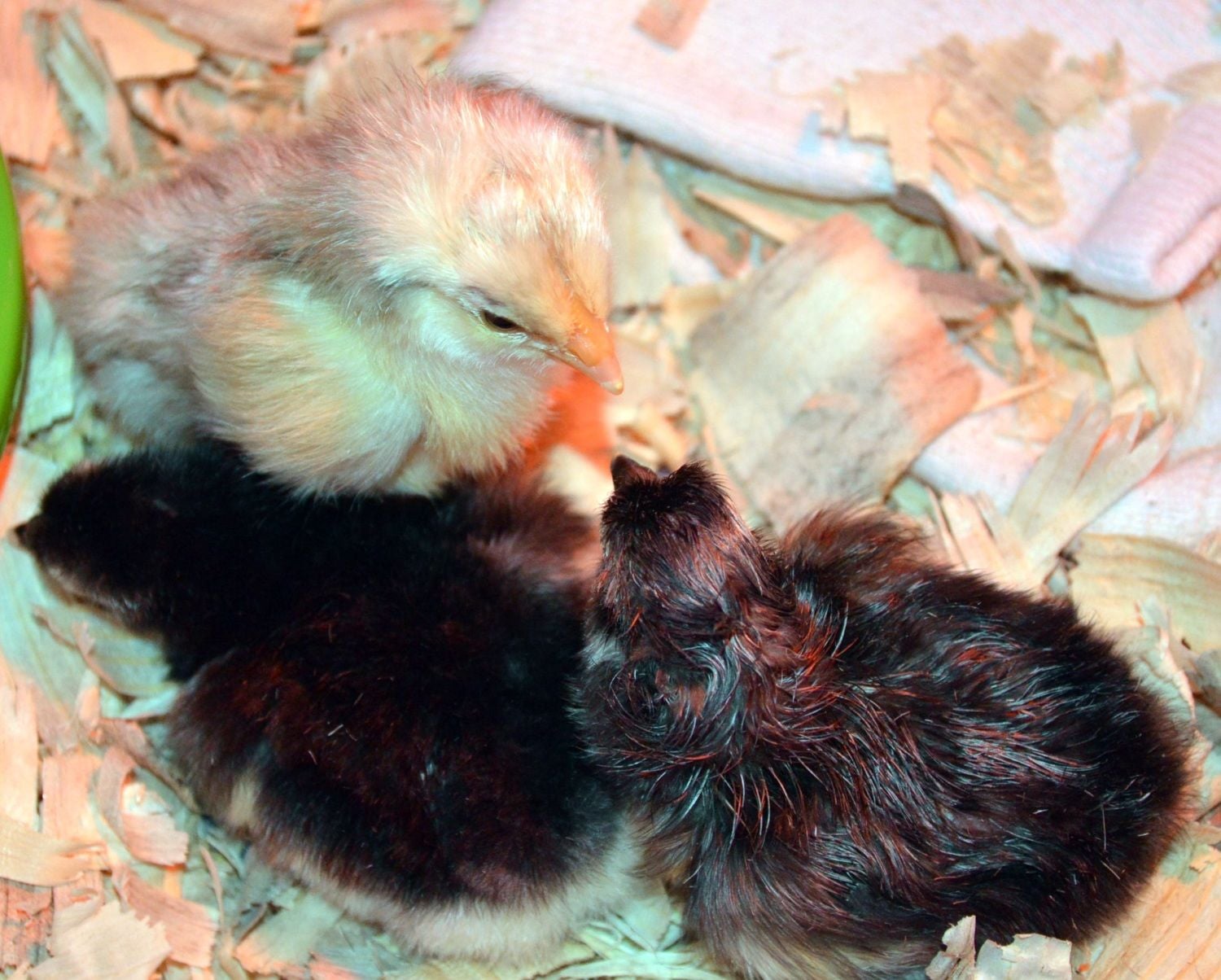 There is heaps of cheeping and chattering from the kids! They love the babies, and seem to spend every waking minute cuddling chicks while they are small.