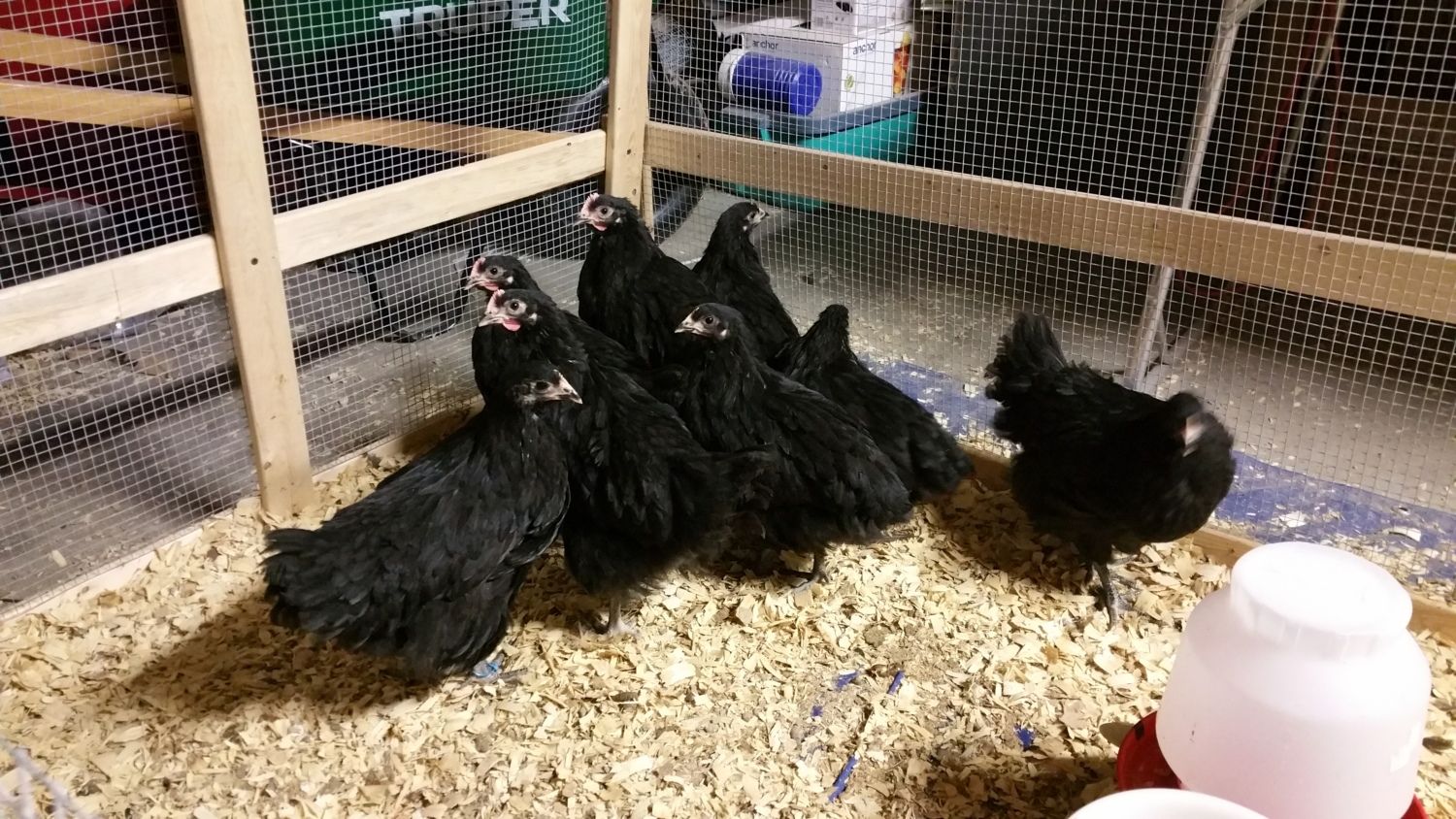 The red on the right looks like a rooster/cockerel---the black and other red looks like pullets. The black one looks like a black giant.I think the black and red on the right may be Roos...what do you think?