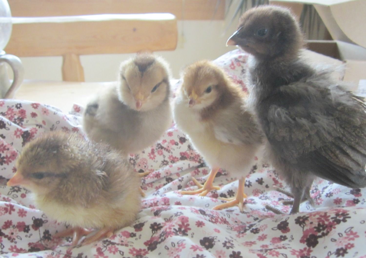 I can't remember if I posted pictures here of my 4 chicks from my hatch. If not here goes, if I did sorry. Not the greatest pics, they were moving around too much lol.