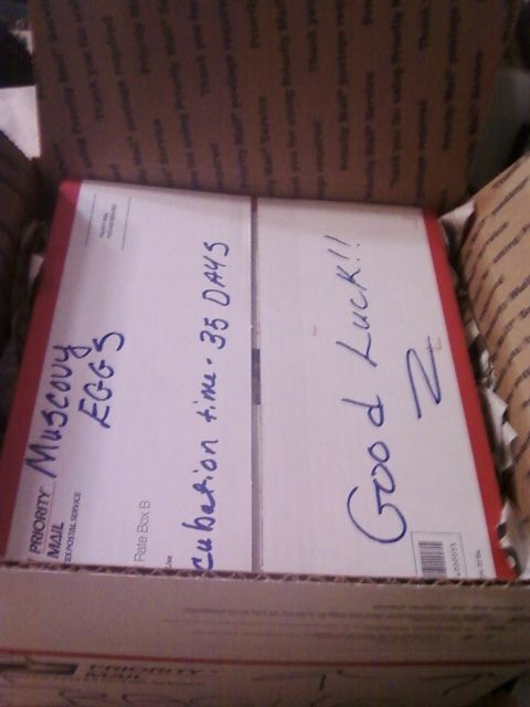 Then I close the box, tape it up, and write what's in it on the top of the box. These were Muscovy eggs sent to a customer.