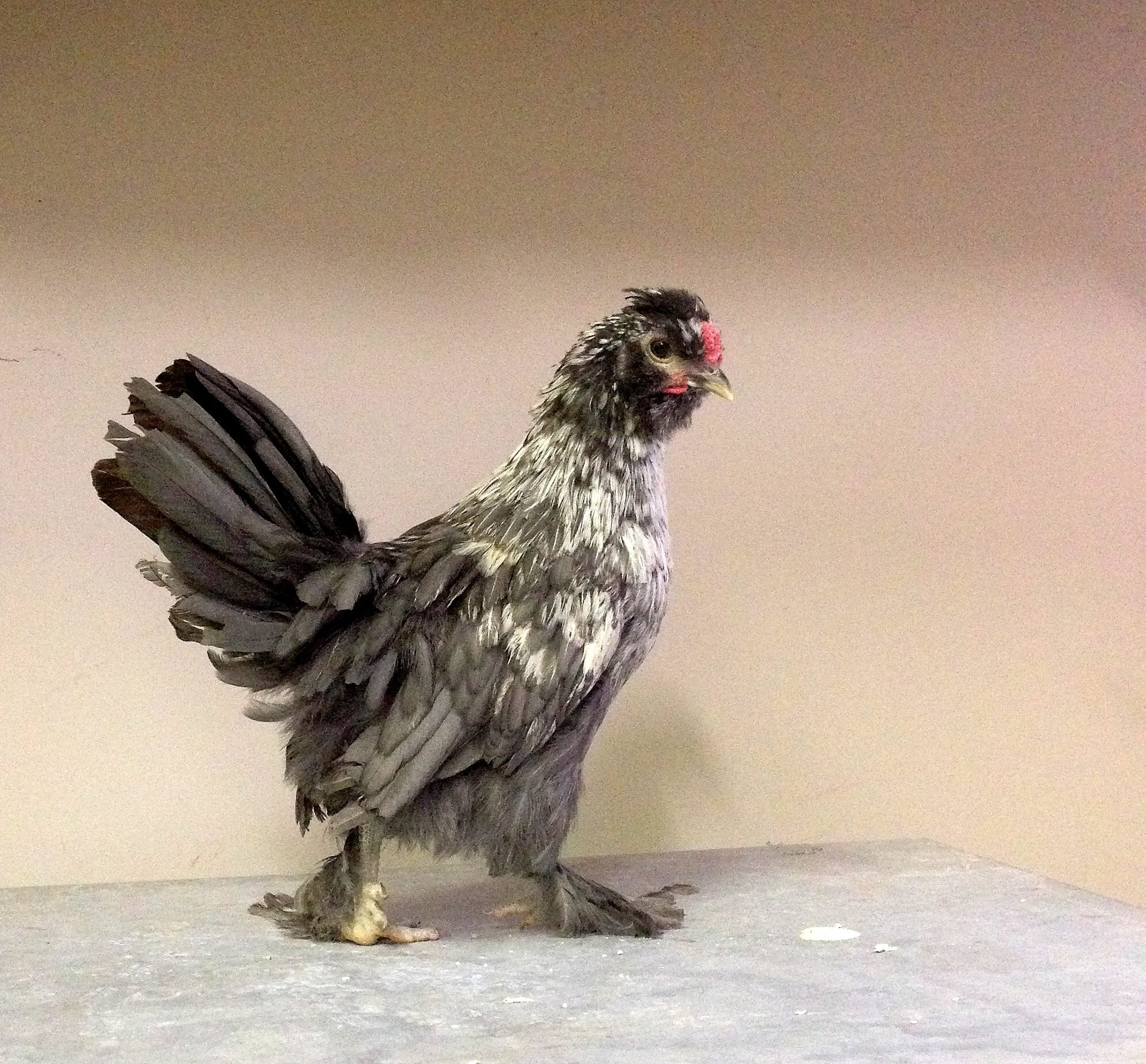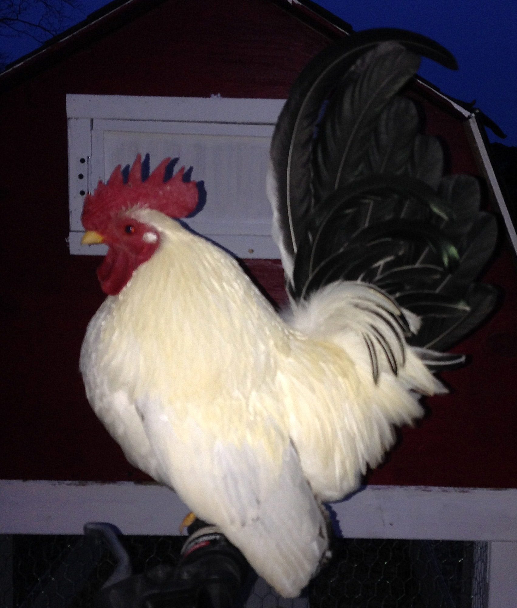 he did a nice busy job for my new years hatch. he is now a daddy to these beautiful roosters! both are inheriting his huge tail and are growing sickles if you can see them! Jappie (silkie jap cross) black tailed sexlink (cross Americana X Japanese)