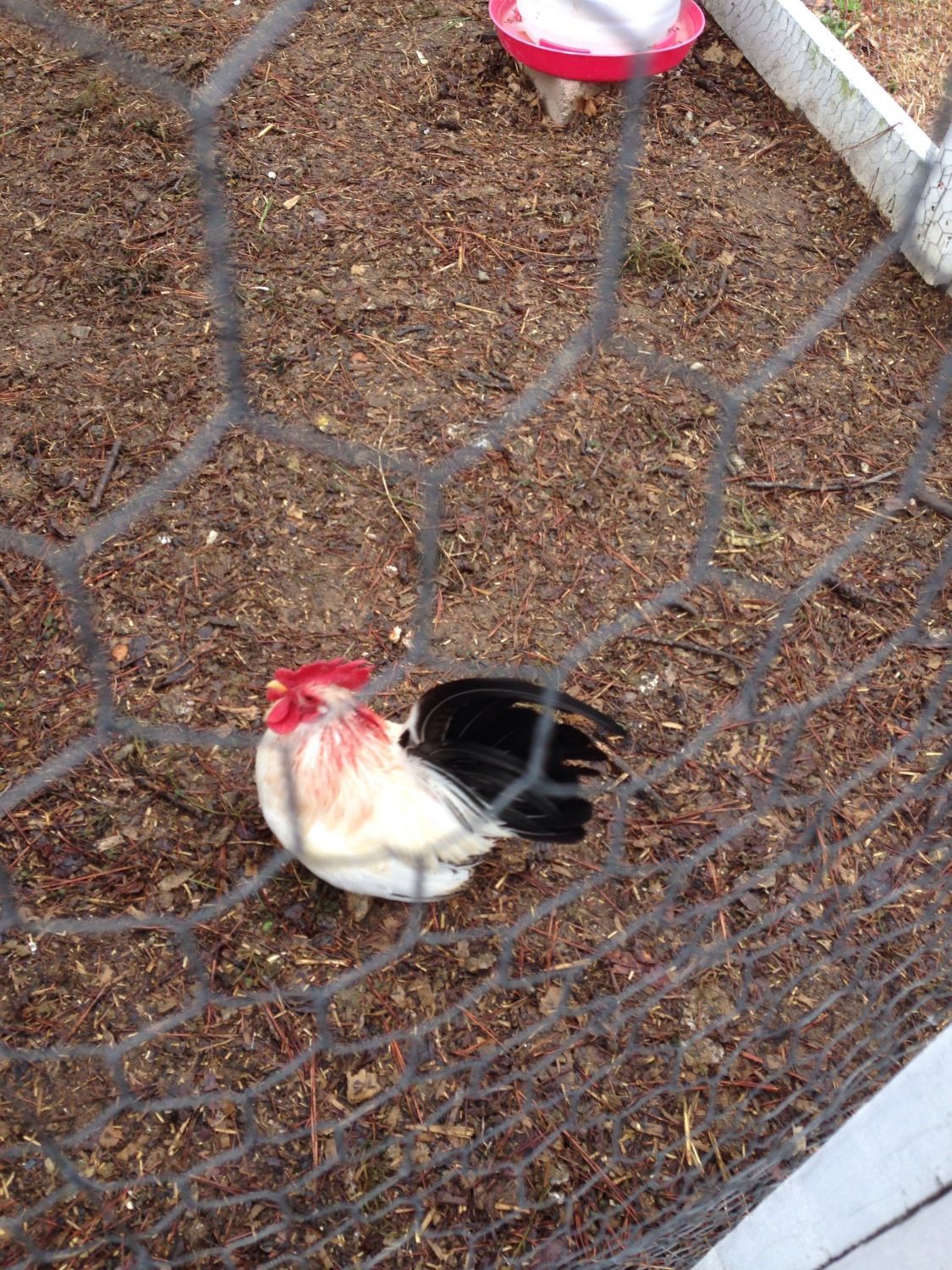 I TELL YOU! WAY TO TURN A GOOD DAY BAD! I had found this morning instead of our planned 3 hour delay for school today we ended up not having any school. So, my mom told me we could go down to our breeders and bring him all our extra roos, which I had planned on also taking eggy our silkie to him as well.....he was beating up marshie all too much. so the other day I decided to take eggy to my breeder who was not open sunday, so I planned on taking him today. what made me decide to get rid of him was the fact that he was over mating his girl and was pulling feathers out way too much. eggy tried mating with marshe and she was trying to get away, so Cadbury came after eggy to get him off of her, protecting his girls from eggy's dumb brains. so when we went down to the coop we drove up to it and my mom had said for me to stay in the car so I didn't get my shoes all dirty and I could tell her which roos I would take. that's when she had noticed Cadbury. when I saw him I was thinking, wow he sure was rolling in the mud! then I realized he had blood caked all over his hackles! the back of his comb was chopped off by who knows what.....but I knew it was eggy. I stormed over to eggy and grabbed him by the tail with so much force I just walked to the box and threw him in. I screamed I hate eggy.....I wasn't trying to be mean to him, its just Cadbury is my pride and joy and he had hurt him! I just broke down after that and couldn't see my baby in the state he was in....of course the blood made everything look worse that it actually is...I think. then my mom told me to just keep one of the 5 roos from my new years hatch, which I was sole fully keeping 2 and temporarily keeping one to sell to another local BYCer here. well, she just shoved all the other roos into the box except for my two I wanted, leven and milkshake. then all she said was I told you so.....uh, sorry but you told me what? nothing. I had told her I needed to get rid of my roos...she never told me.... LOL anyways, I was ticked at eggy. wouldn't even look at him. im just mad that Cadbury can now not be entered into our state fair. ANGRY you have no idea. I am still crying as im typing this because I couldn't stand to loom at him In such a state. im sorry. sorry the gross pictures, but it was what I had seen.....im so upset! looked back in the coop after I got back from my breeders and it looks like a murder scene with blood speckled on the feeder, shavings, doorway, and nest boxes.