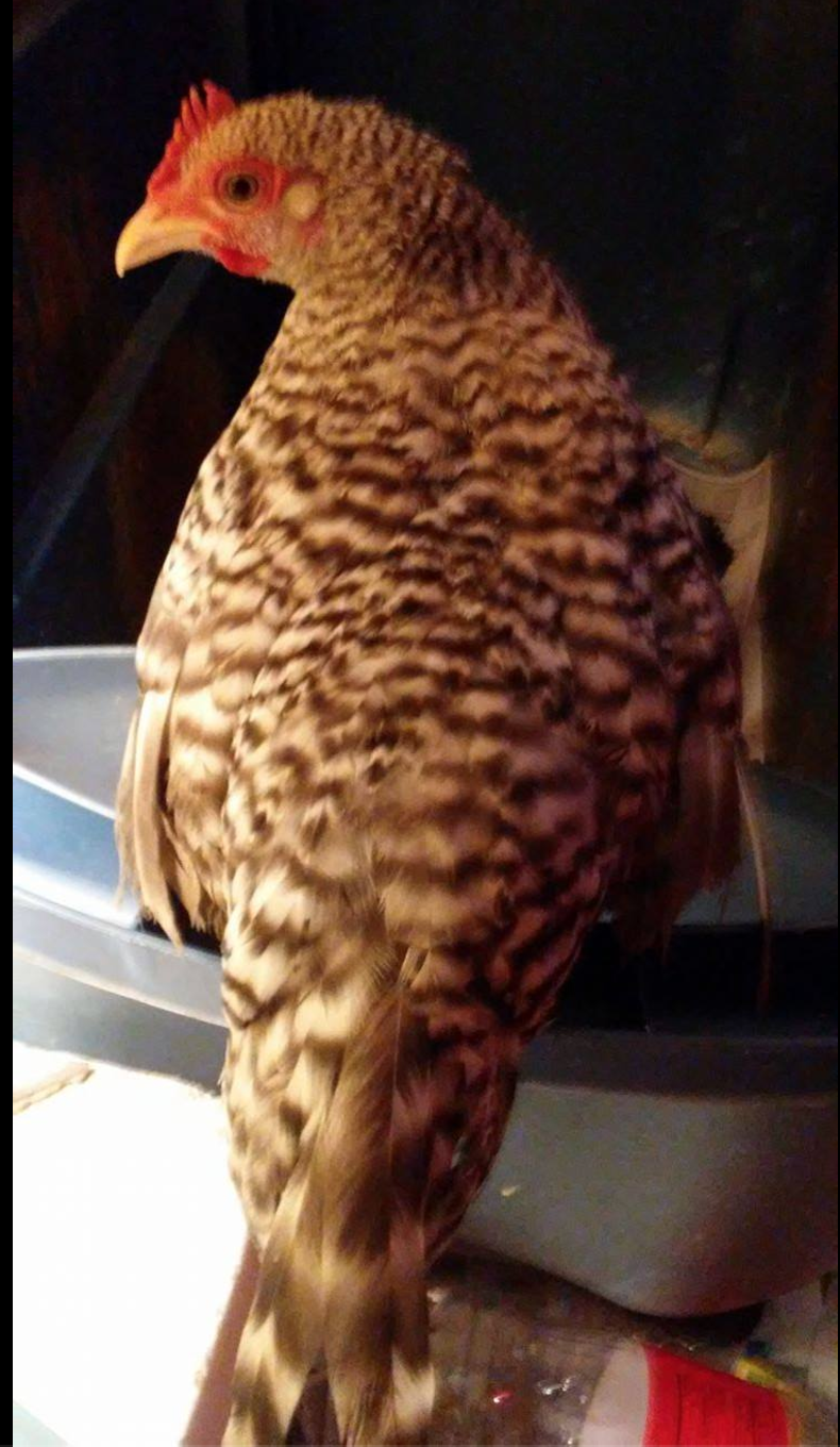 Keeping a rooster in a small plastic box for several months... so small he can't even hold his tail upright, and causign him to become deformed, seems a tad cruel. How come you could not get him a cage or make him a bigger place to live during that time?