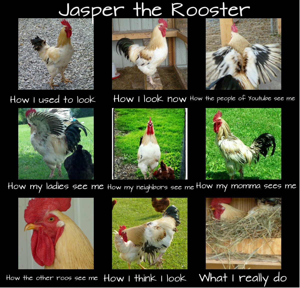 Well, all I can do is hope that some of you remember who he is! If you don't, Jasper is my RSL rescue roo, and he has the biggest rooster personality and the most attractive wattles in BYC (Aside from Stan the Man and Super Bird)