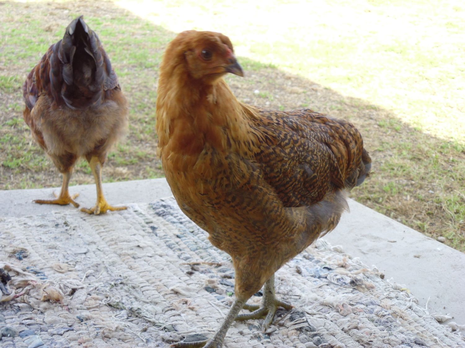 The pullet on the bottom looks very similar to wheaten coloration but since these are a mixed, the colors and patterns are unstable.