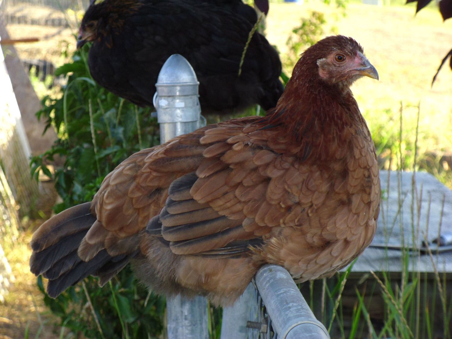The only other chickens the lady had at the time were Black Copper Marans & Partridge Chantecler's. The pullets are lighter as pictured below, but very different as well.. they are not laying yet so I don't know the egg color. They are beautiful and very friendly - a joy to have around the yard!