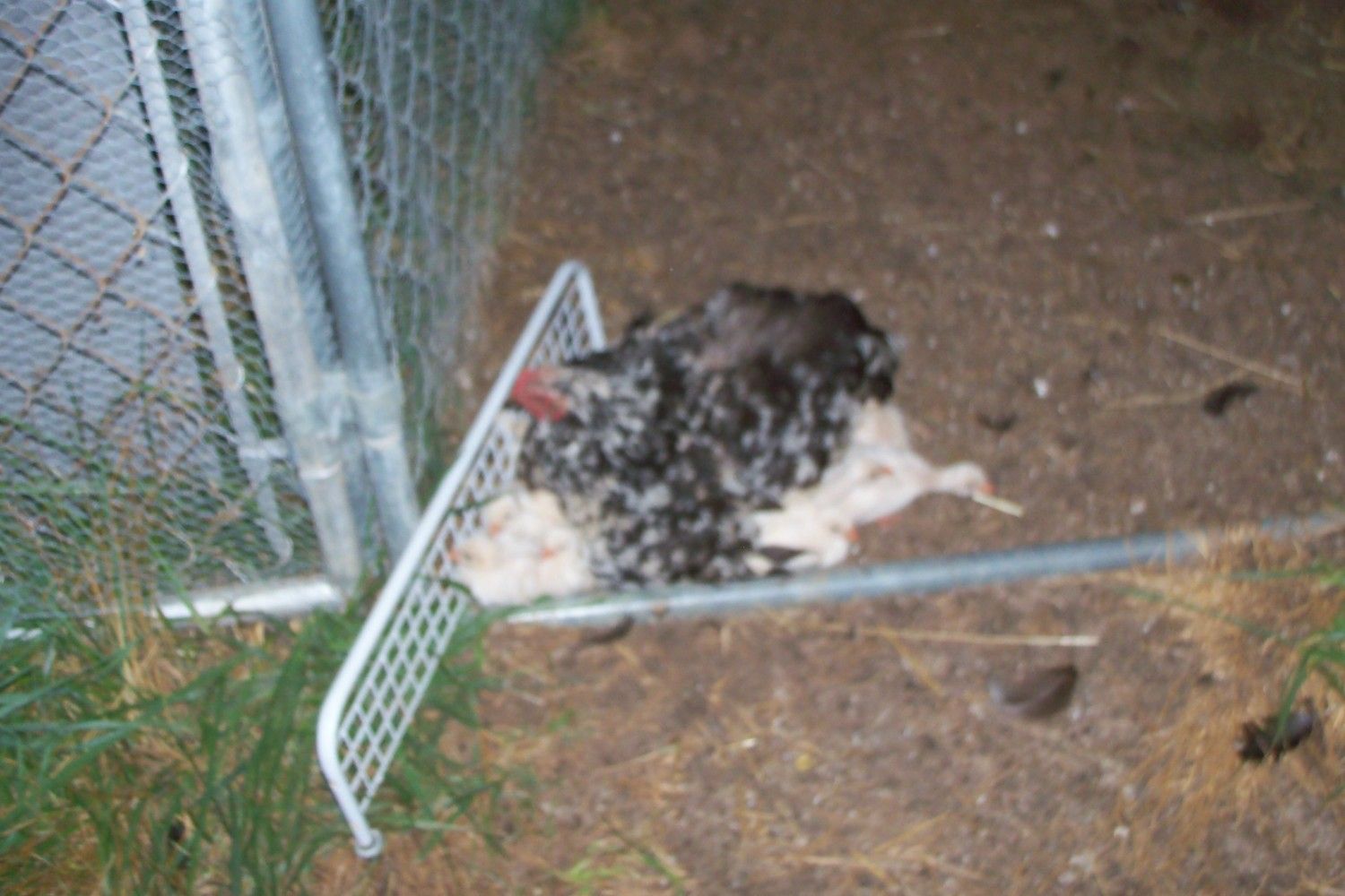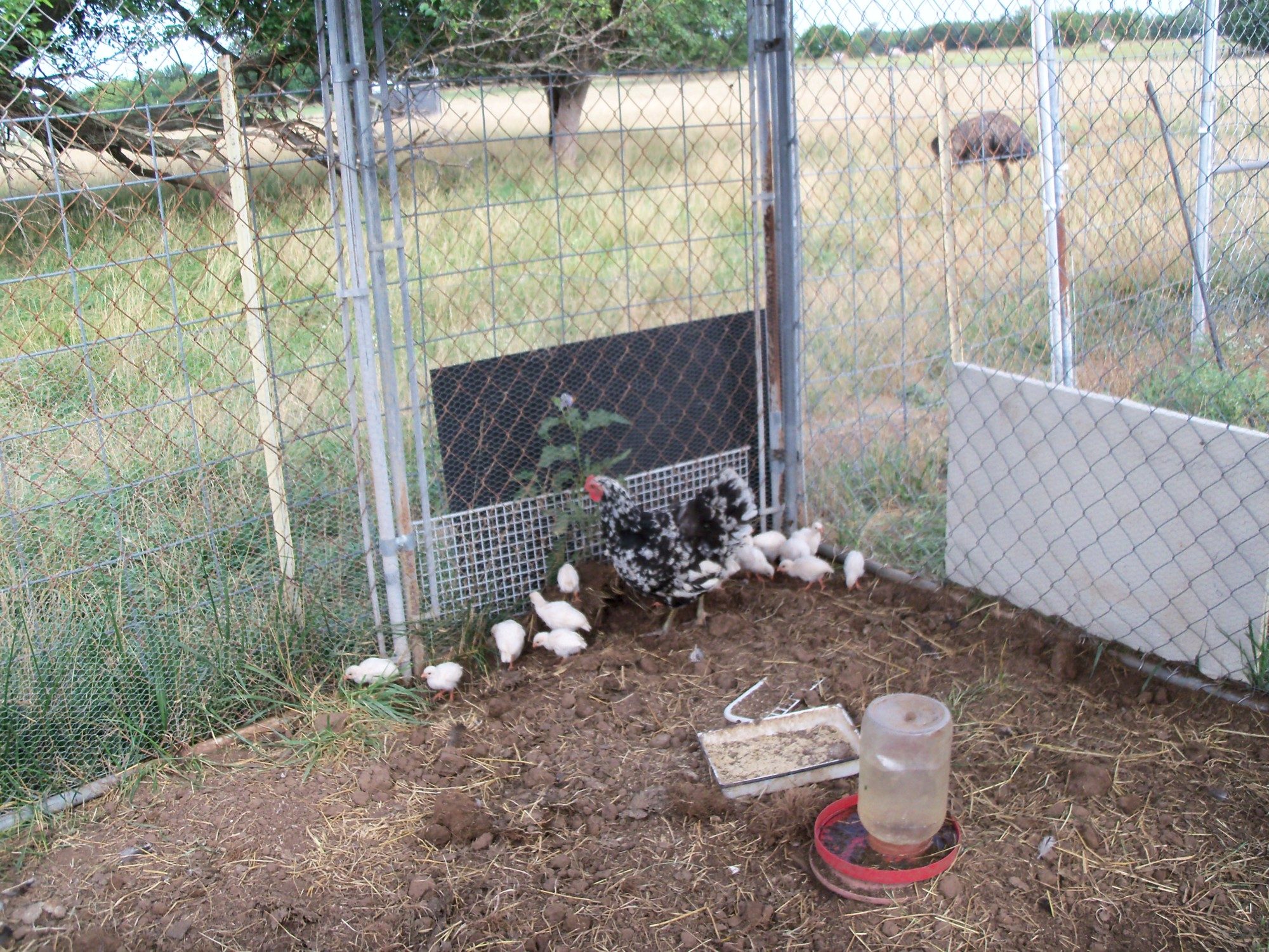 This is a Mottled Java hen and her 17 guinea keets. The first photo was taken at night, as she roosted against the gate, trying to cover her brood.
