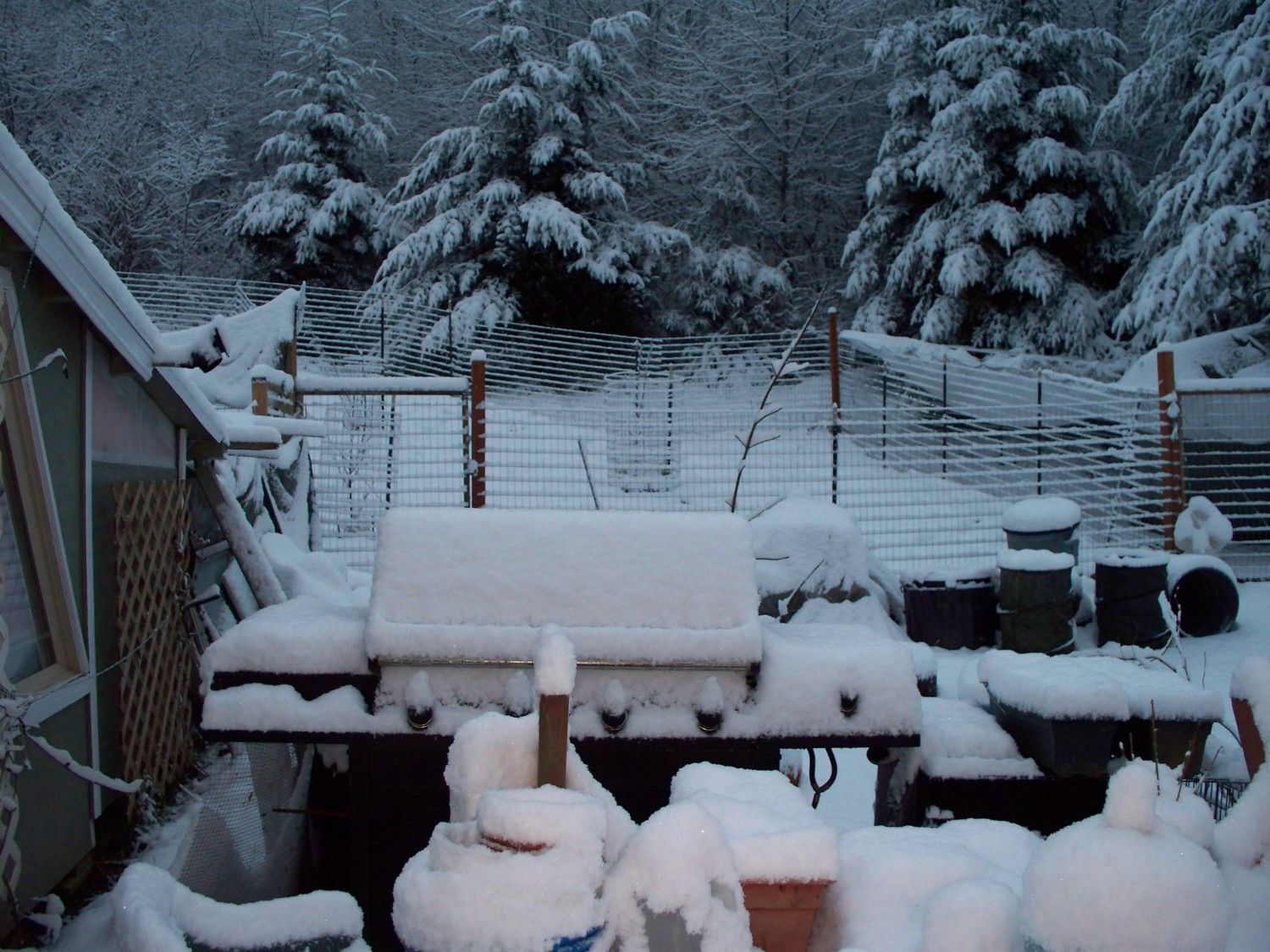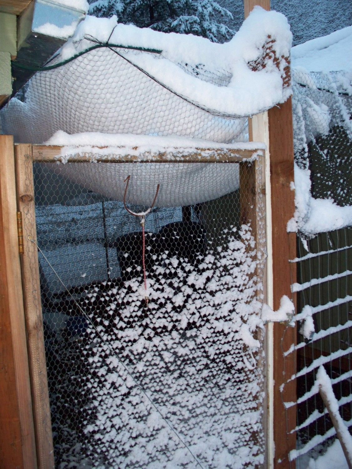 Pen netting overhead was so bogged with snow we beat it off over & over with the broom.............on every pen, round the clock for days !!!