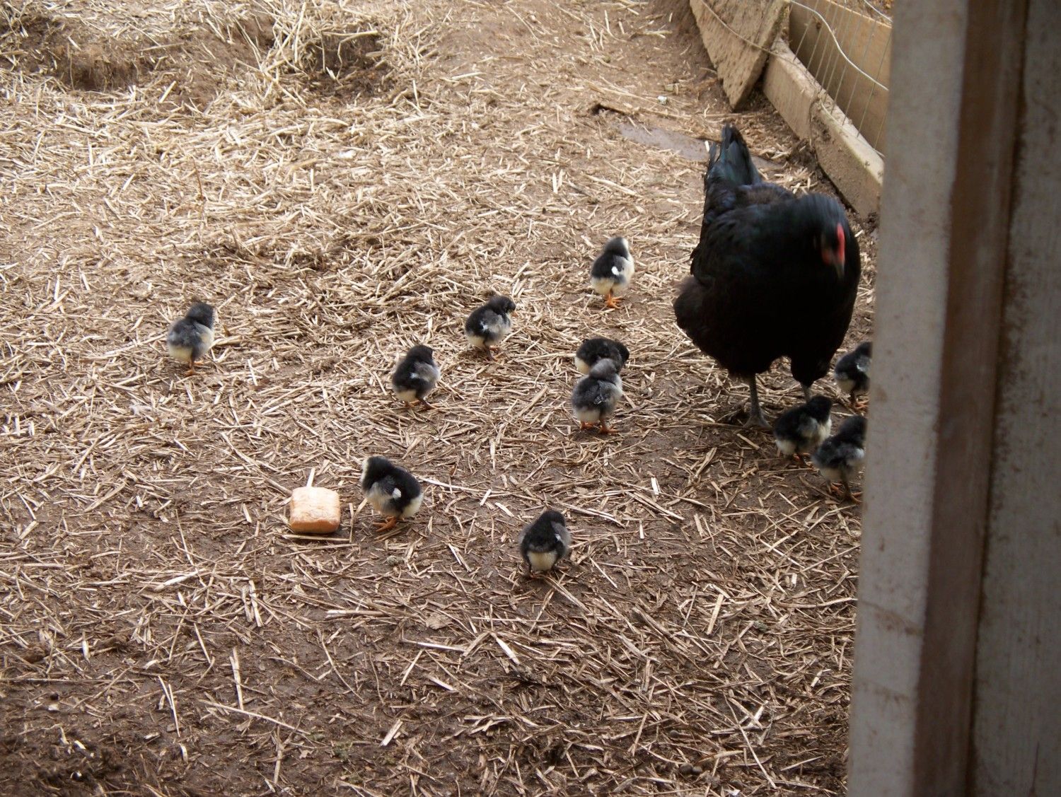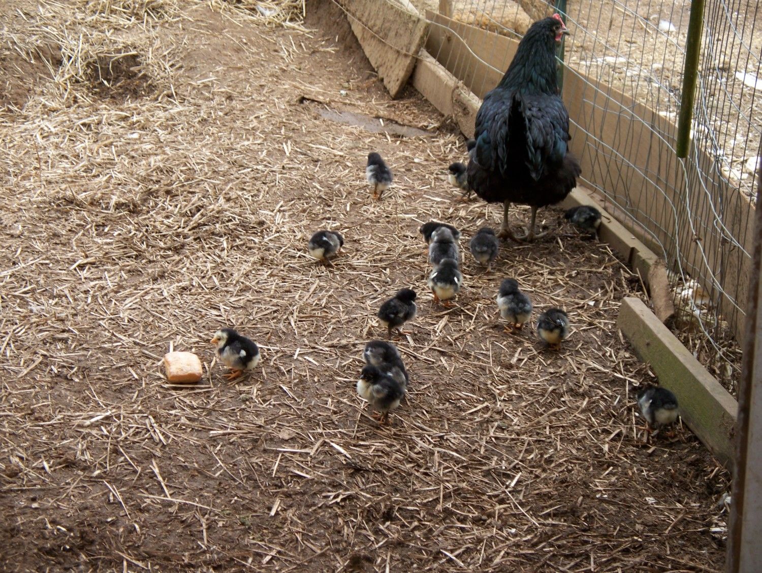 Saw a little yellow face peek out from under 1 Buck hen....hear alot of tiny peeps !!!