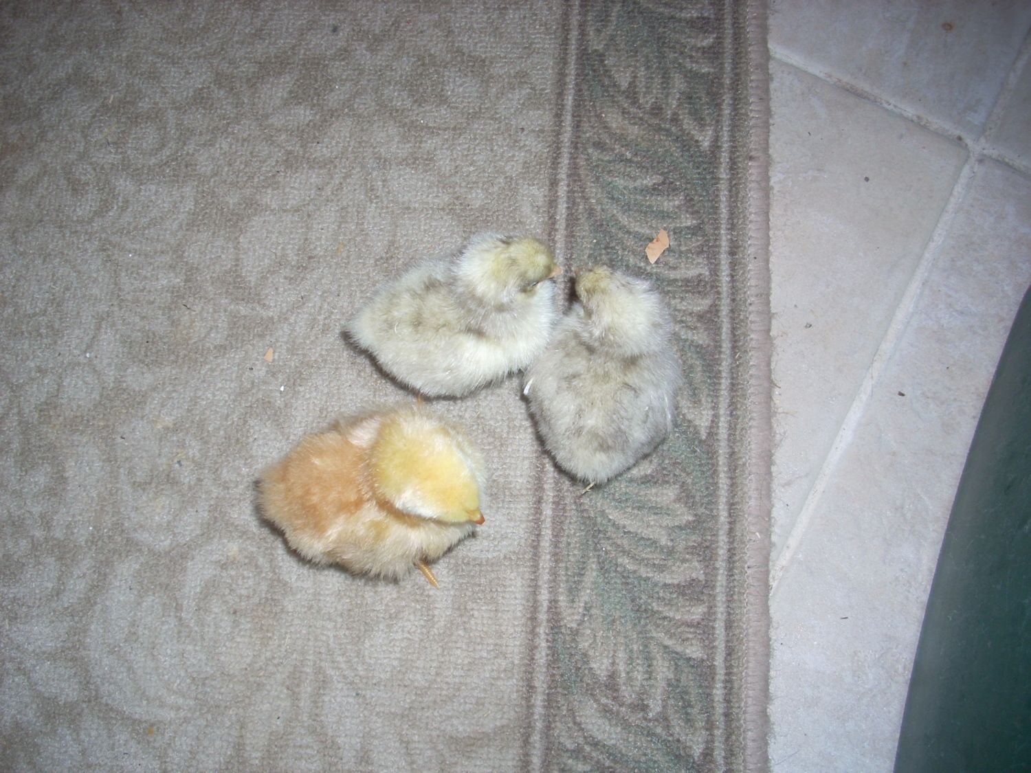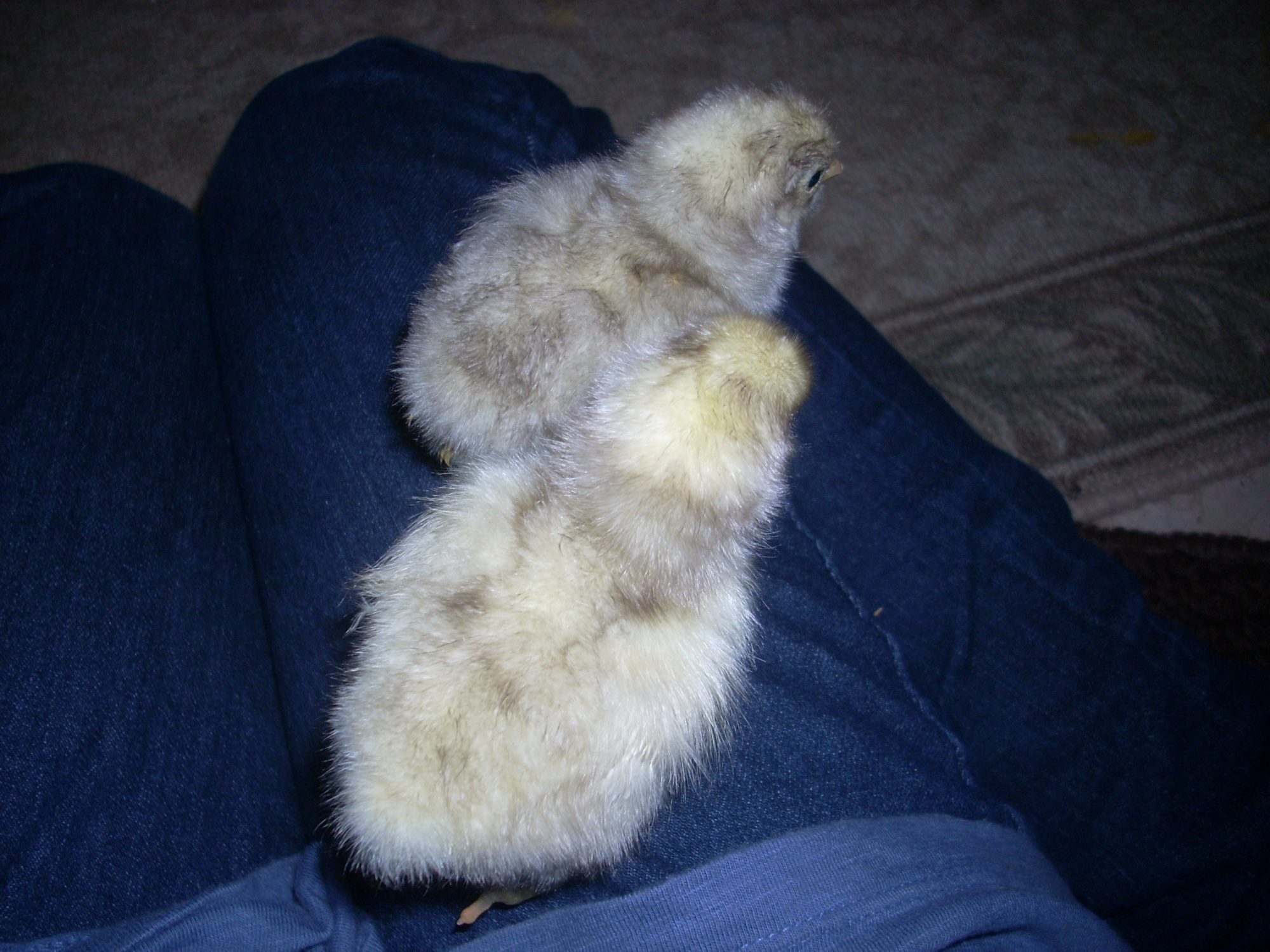 Hello, I have hatched to odd colored chicks from my white Jersey Giant pen, does any one have any ideas on what color they might be. They are much smaller then the normal yellow colored ones
