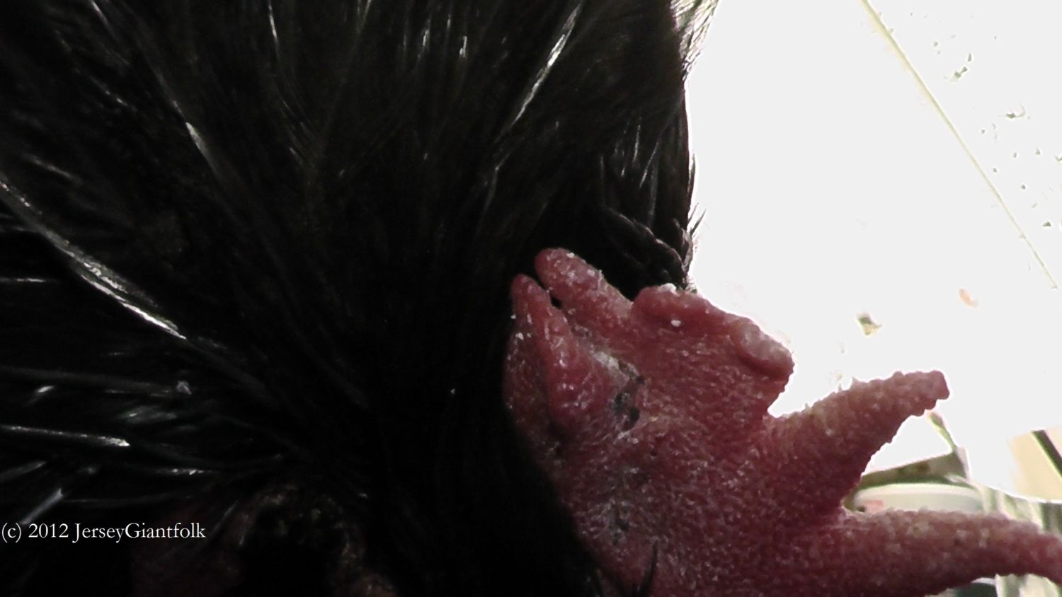 Pink Feet, Shorter back, That body type, I'd go with a Blue Orpington or maranI feel like an idiot here. on second look, the bottom of his feet are pink. What could he be? any ideas?