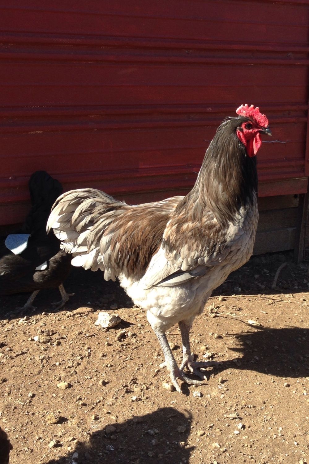 I need to take another pic, he is very blue/grey. Just looks more white in that pic do to the angle and bright sunlight on his chest and side towards the camera/phone. I have four blue Roos all have medium blue on chest and sides then darker on neck.