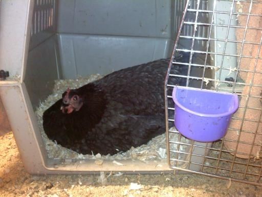 Thanks. That settles that. IF she is indeed broody, I'll let her sit on plastic eggs for three weeks and tuck day old, sexed, vaccinated chicks under her. I'm in the city and only need a few and have no way to deal w/ roosters so that's easiest for me.