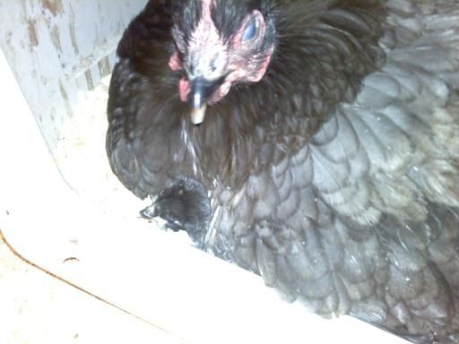 You can see one of her chicks peaking out in this pic (she was blinking, by the way, she's not blind):