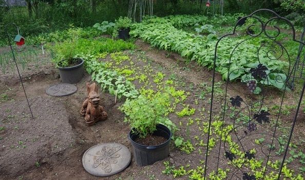Left of the Fire Dragon statue, seeded to lettuce but not up yet...not quite.