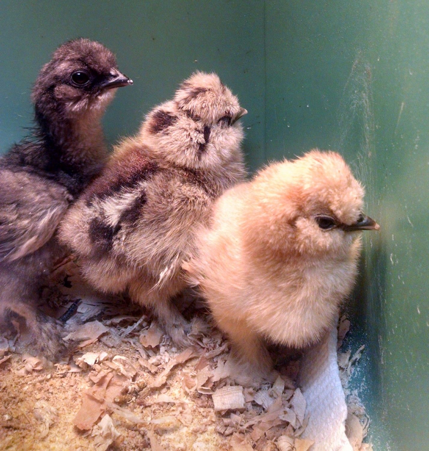 I've recently purchased 3 silkie chicks that I am hand raising in my home. I'm illustrating a children's book and they are going to be characters, so this time around I purchased show silkies. I'm pretty sure the blue is a boy. There is also what appears to be a light partridge and then the third, a dark patridge. With my old silkies, when they were chicks, one was a rooster. He turned out to be the orneriest of orneries so he was placed with another chicken person.