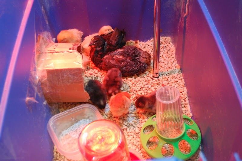 And another brooder pic, not shown, but I made a cover for the brooder out of wire cubes.