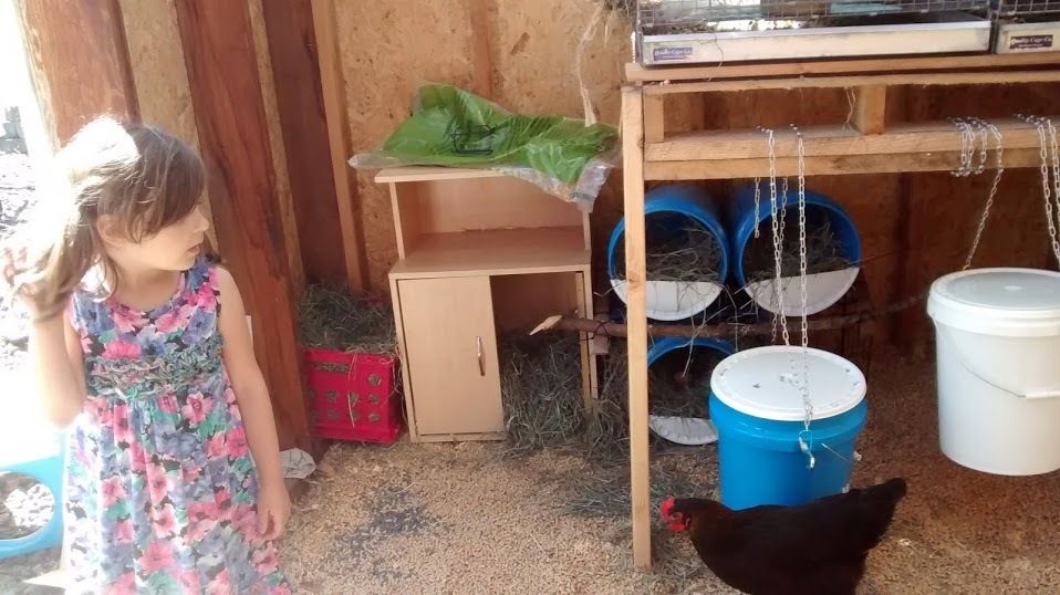 Wow you have gotten a lot done! I love the bucket feeder and waterer. the bucket nests will catch on, just give them time. make sure to fill them full of bedding, shavings or straw or whatever you use -- use a lot of it. also, placing fake eggs (feed store) or golf balls will help them get the idea that eggs belong there. or just move recently laid eggs into that nest for them to visually see.