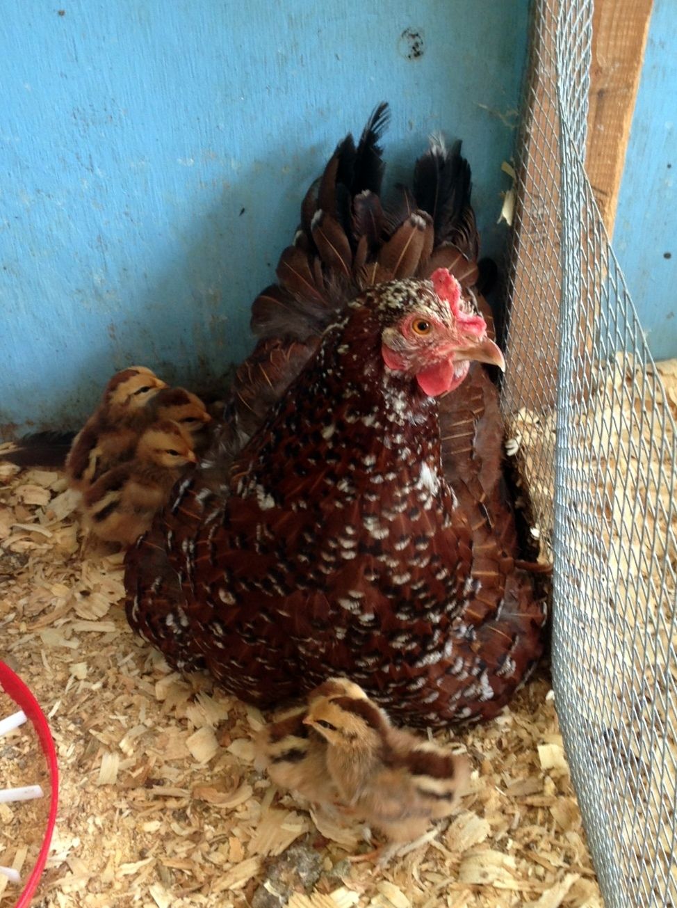 I am on the other side of the country right now, but my SO has been looking after all the animals and keeping me up to speed. I left a first-time broody behind, and yesterday she hatched out 10 of her 12 eggs. She is one of the most dedicated broodies I have ever dealt with, to the point that I had to dunk her beak in a bowlful of water because she refused to get up to eat, drink, or poo and was visibly dehydrated. Still, all is well now and she is reportedly a very attentive mother. :)