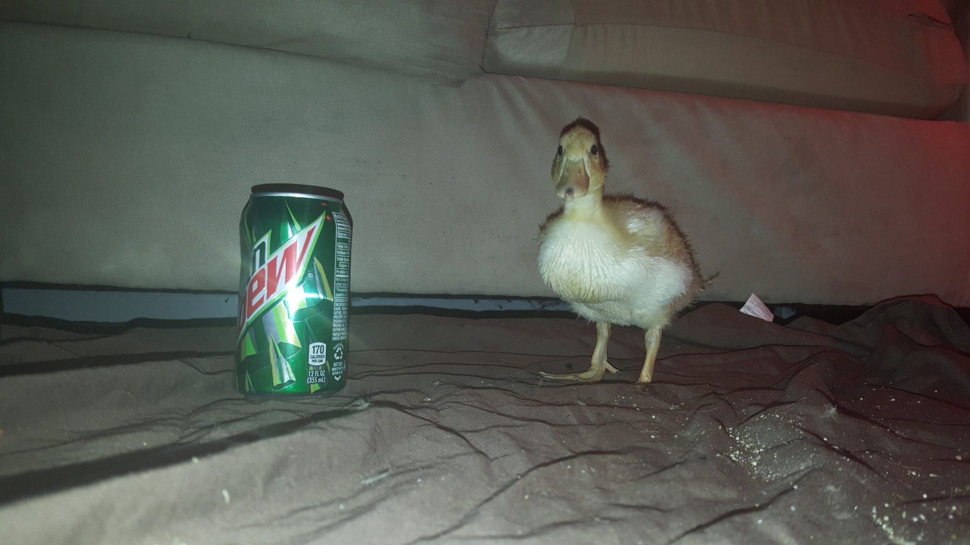 @RavynFallen I feel like she is the same size as my large ducks were at two weeks. Maybe just growing extra fast! I got her from someone local who isn't an expert at Calls, they had been given a breeding pair randomly & hatched a couple babies. I have pictures of the parents & some of her just after hatch, I picked her up the day after. She hatched June 22nd. She was all yellow & has been changing to mostly white on the chest (as you can see from the picture), she does have a dark patch on her back near her tail. Her beak has not changed much other than her dark spot on the end has darkened a bit over the last few days. She's not going anywhere if she isn't actually a Call. As all my ducks, she was intended as a pet, no show quality needed! :D I do need a name for her....been calling her Peep or Pip, but that is just because that is the only sound she makes. Who knows it may stick. Thanks for the help. The leaping was a surprise since my fat-so full sized ladies never did this. :lol: