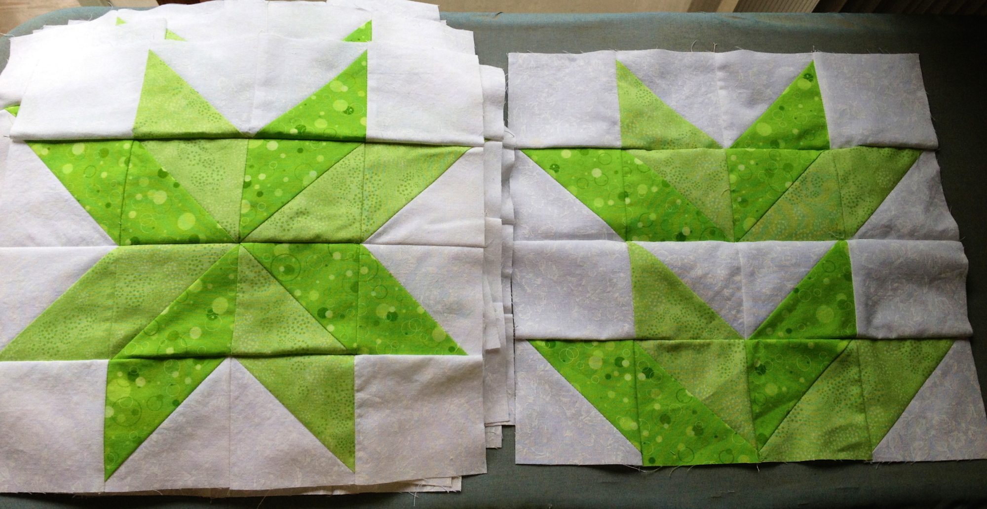 Last night I tried to stream line the whole square process by marking my strips of fabric with cutting marks and sewing marks. This was excited the whole thing worked until I checked the pattern and saw it was 4 inch squares, not 3 and 7/8 inch squares. I guess I should have followed my own advice and check the directions before starting!! (Don't tell my 3rd graders!!)