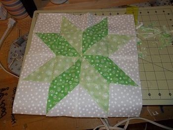 I took my backing and got it as tight as I could, I had to tape it to my floor since my table was not big enough then I put down my batting I used the polyfil stuff you get at Walmart then put on my top and used safety pins and pinned and pinned and pinned. I like the stitch in the ditch or you can do the 1/4 stitch around your shape. There is even the squiggle which will hide a multitude of sins. Can't remember what it is called. Google finishing quilts and the Missouri Quilt Co. has a lot of nice tips and videos on how to finish quilts.While we are waiting for sweet green blocks to arrive and assemble, lets discuss the next step in the quilting! How do you quilt your top, batting, and backing? What is a inexpensive alternative to the $400 wooden quilting frame? I am working on one for my school auction and am close to hand quilting, but I don't know where to start with the hooping. Do you baste with colored thread or safety pin it?