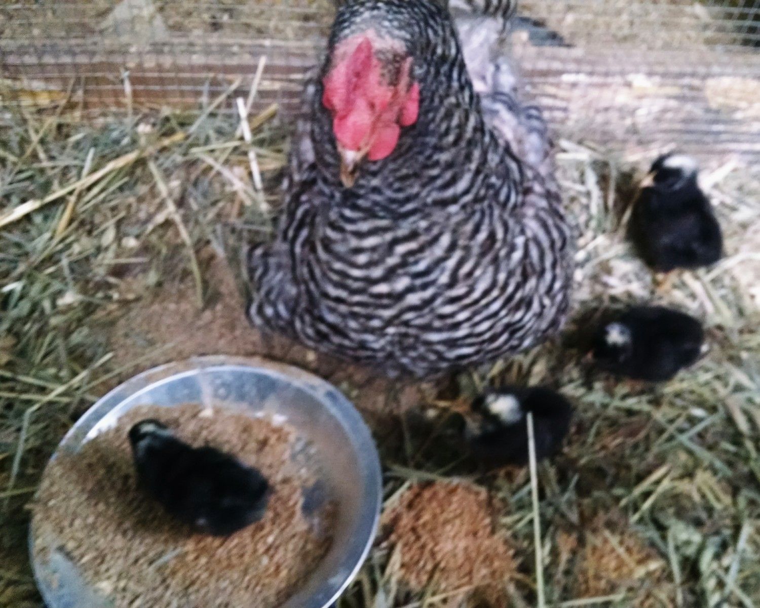 My beautiful broody Plymouth Barred Rock hatched out 4! I am SO proud.
