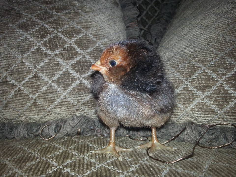 The little RIR who is right in front of the picture was the third chick born and he has earned the name Cheeky Chops.