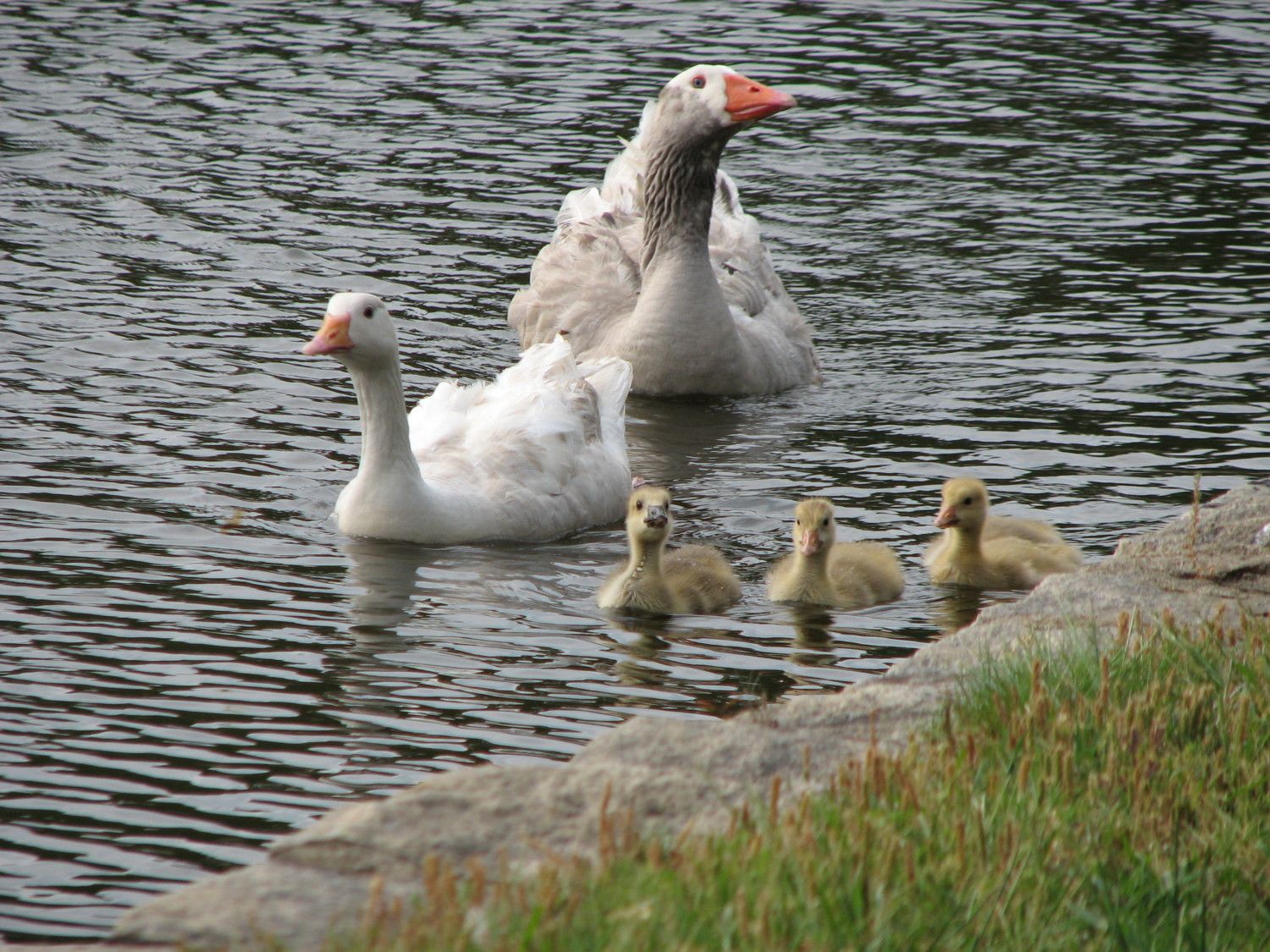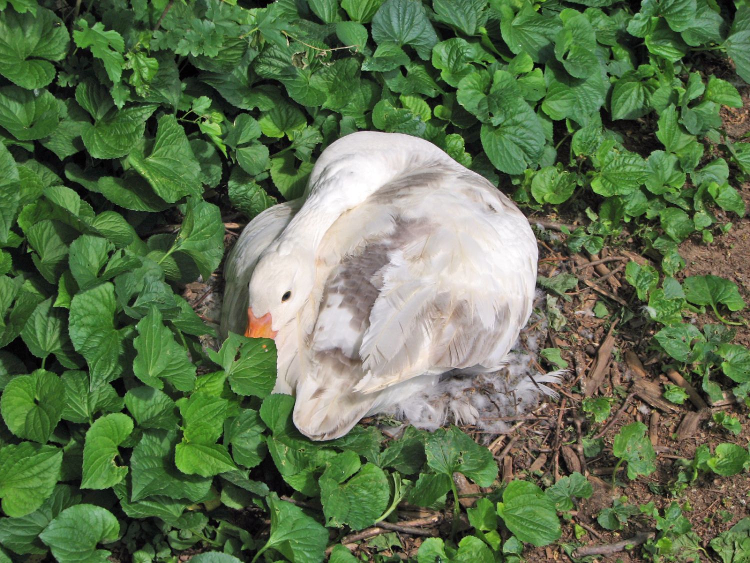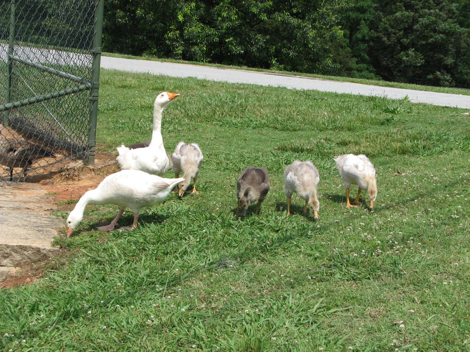 I find the pictures posted of this cross very interesting. It appears to me that the domestic gander that fathered the hybrids has a single copy of the partially dominant sex linked dilution gene Sd. This would be consistent with your description of gender and color of the offspring. Half of the female and half of the male offspring would receive one copy of the gene resulting in half the males being light gray/blue and half the females being white. Depending on other genes the Sd dilution will cause females to be white (white domestic greylag breeds) or gray (sex linked breeds such as Pilgrim). If this is true then you appeared to nail the sex of the offspring. I would love to learn how you were able to determine the sex of the offspring, especially since they had unusual honks! Did you mostly go by size and the clucks that you mentioned?
