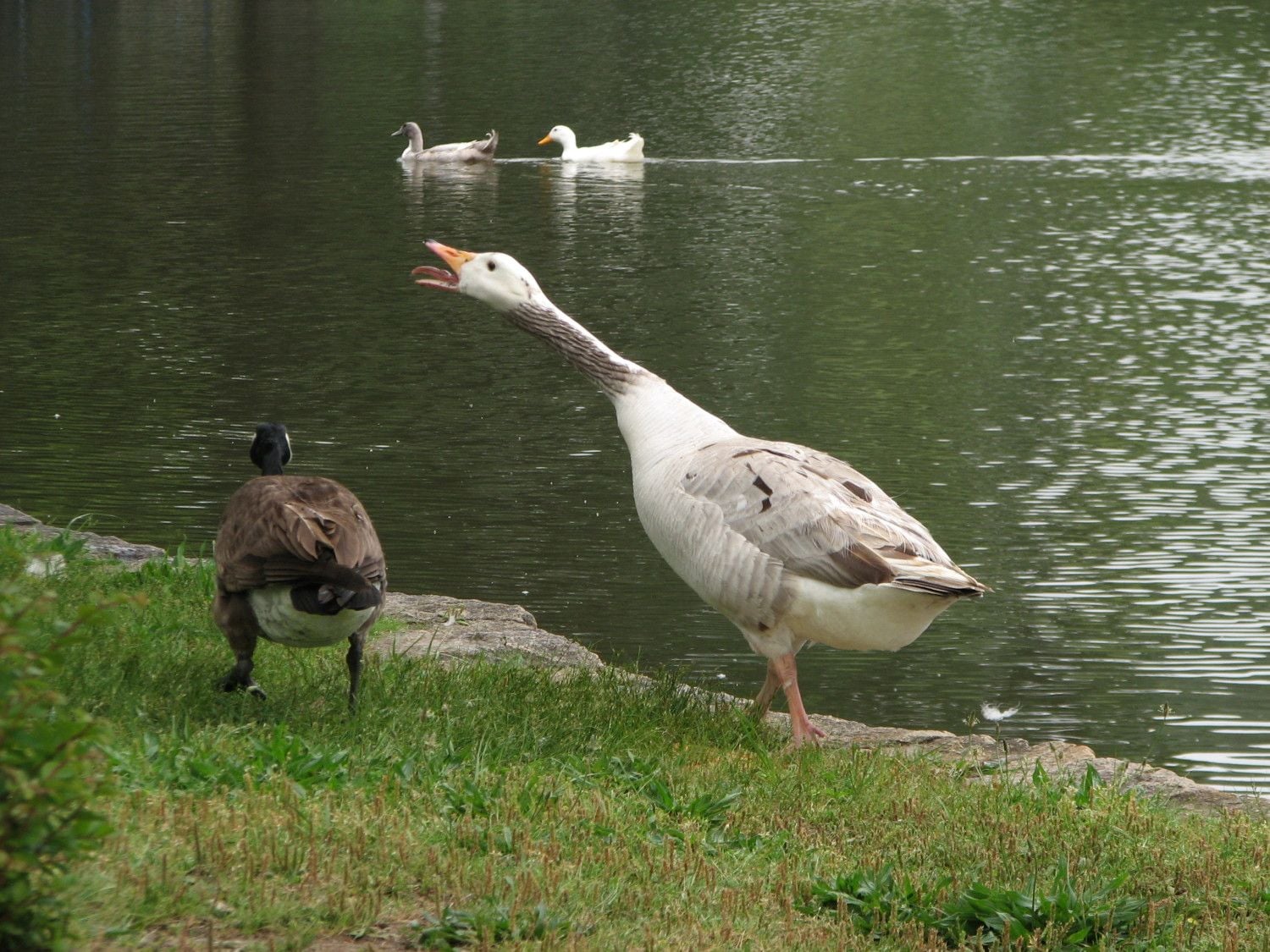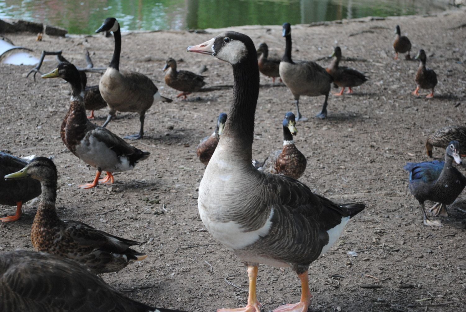 Great pictures and documentation! I find these hybrids interesting and I would like to share some information to clarify. All geese have 40 chromosomes. All birds are actually rather consistent in having either 40 or 39 pairs of chromosomes. There are other factors beside chromosome number that can cause chromosomal mismatch such as genes or whole set of genes that can be arranged differently on corresponding chromosomes of different species. Waterfowl form hybrids more readily than most other groups of animals. The Canada x Domestic hybrids are very common, but are almost universally considered sterile. However I know of several credible accounts of Canada x domestic Anser hybrids being fertile. It may be the case that the males of these hybrids are rarely fertile. Yes, there may be confusion over the parentage of any given clutch of eggs unless the parents were kept in isolation. However, it is also often the case that second generation backcross hybrids of many hybrid crosses of different species will resemble one parent species very strongly, further obscuring matters.