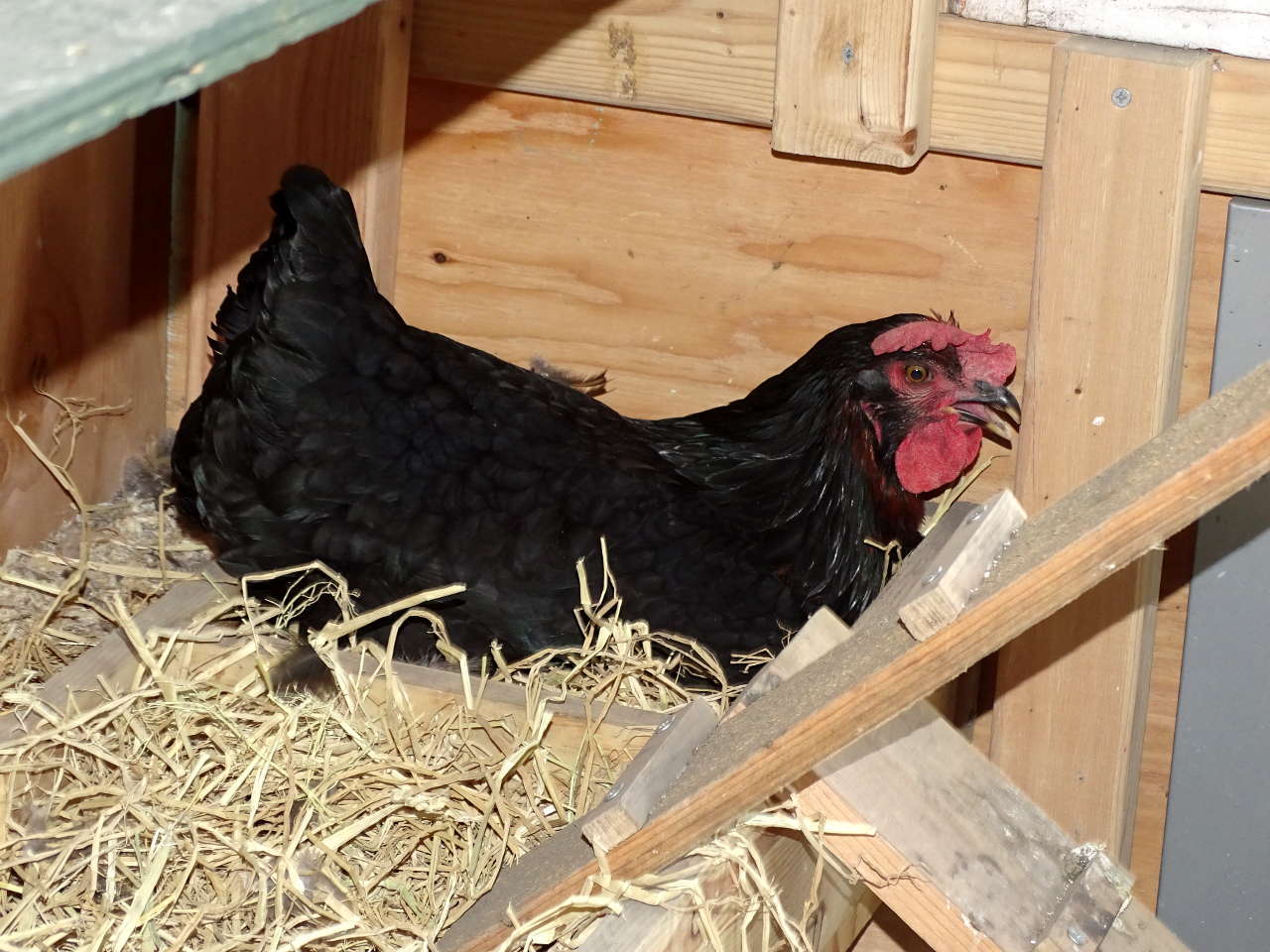 Here's Miss Elvira sittin' in her nesting box...