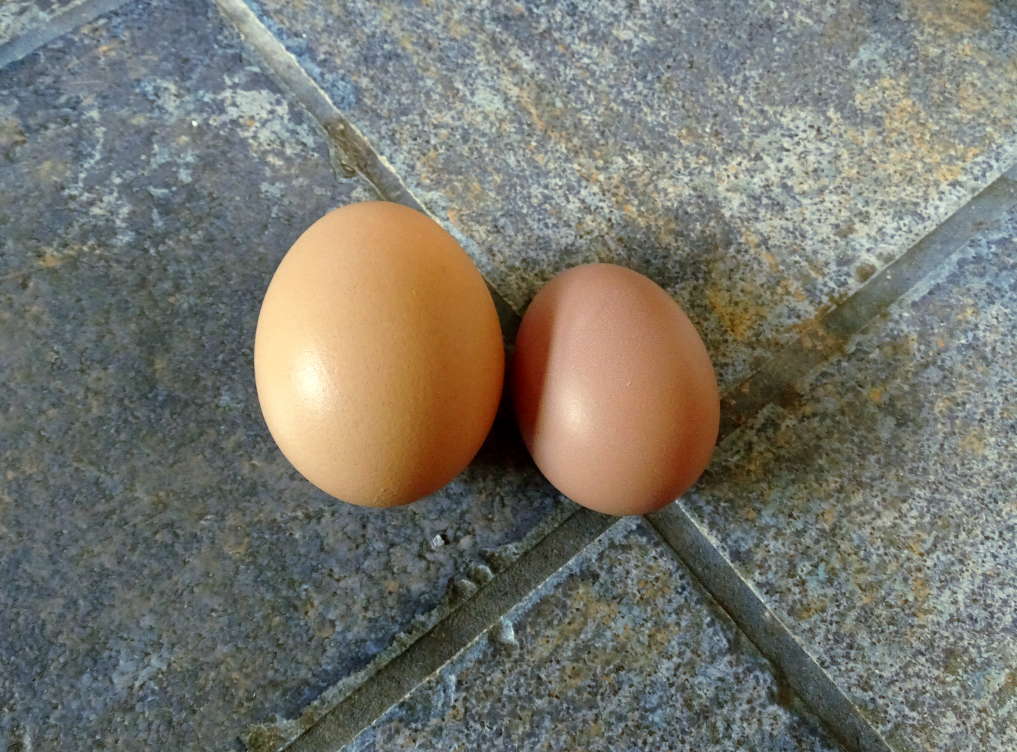 Here is a comparison to one of my store bought Jumbo brown eggs..