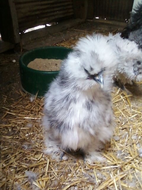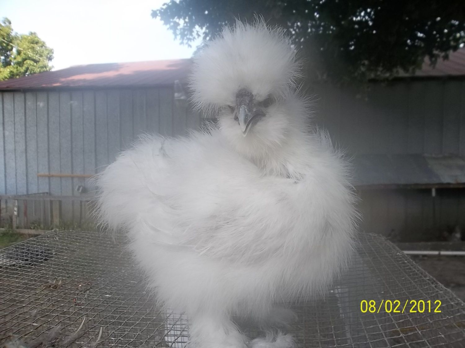 Up for Auction are 9 SQ splash silkie eggs. The roo came from Bobbi Porto stock. He's won 1st in BV. All their chicks that I've hatched all have turned out to be SQ. They have the blue earlobes good toe separation, dark skin and walnut combs and very fluffy. I'm done hatching these for now and have extra eggs. This auction will end on Monday at noon. I would appreciate prompt payment so the winners eggs can go out in the first morning truck tuesaday. Bidding starts at $5 and s&h is $13.00 My paypal addy is [email protected] The hens look like twins so I just posted 1 pic to save a little time. Below are some of their offspring. The frizzle in the pic above is from my sizzle pen. This is the pen all my juvies go in. The pullet in the first pic was entered in a show when she was 3 months old and won BV in the junior division.