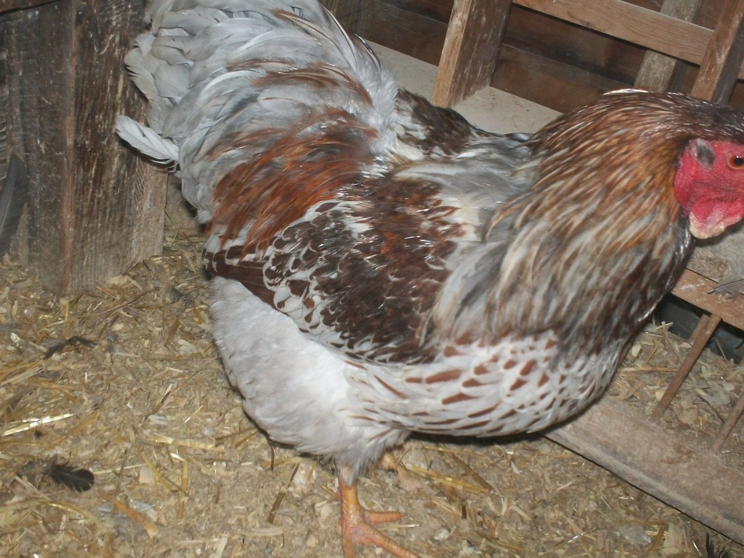 I will start the bidding at $20.00. Bidding starts now and ends Tuesday at noon. I have three dark blue girls in with a splash male. I normally would not use a splash male..he is huge with a half way decent comb, beautiful color legs, and dark mahogany for a splash. He does have some brassiness at his neck..but it is very slight for a splash.