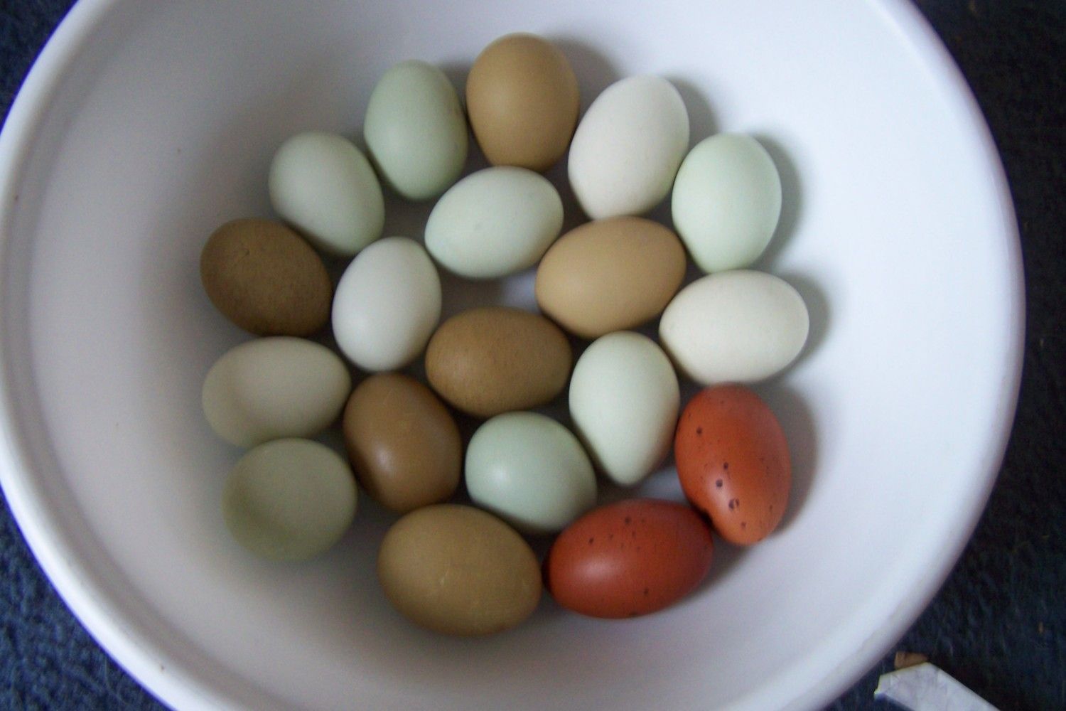 I have been limiting their grazing time to 2-3 hours in the early evening to improve the egg shell quality. Seems to be working. For clarification, these are primarily hatchery bred.However they show rather good coloring.