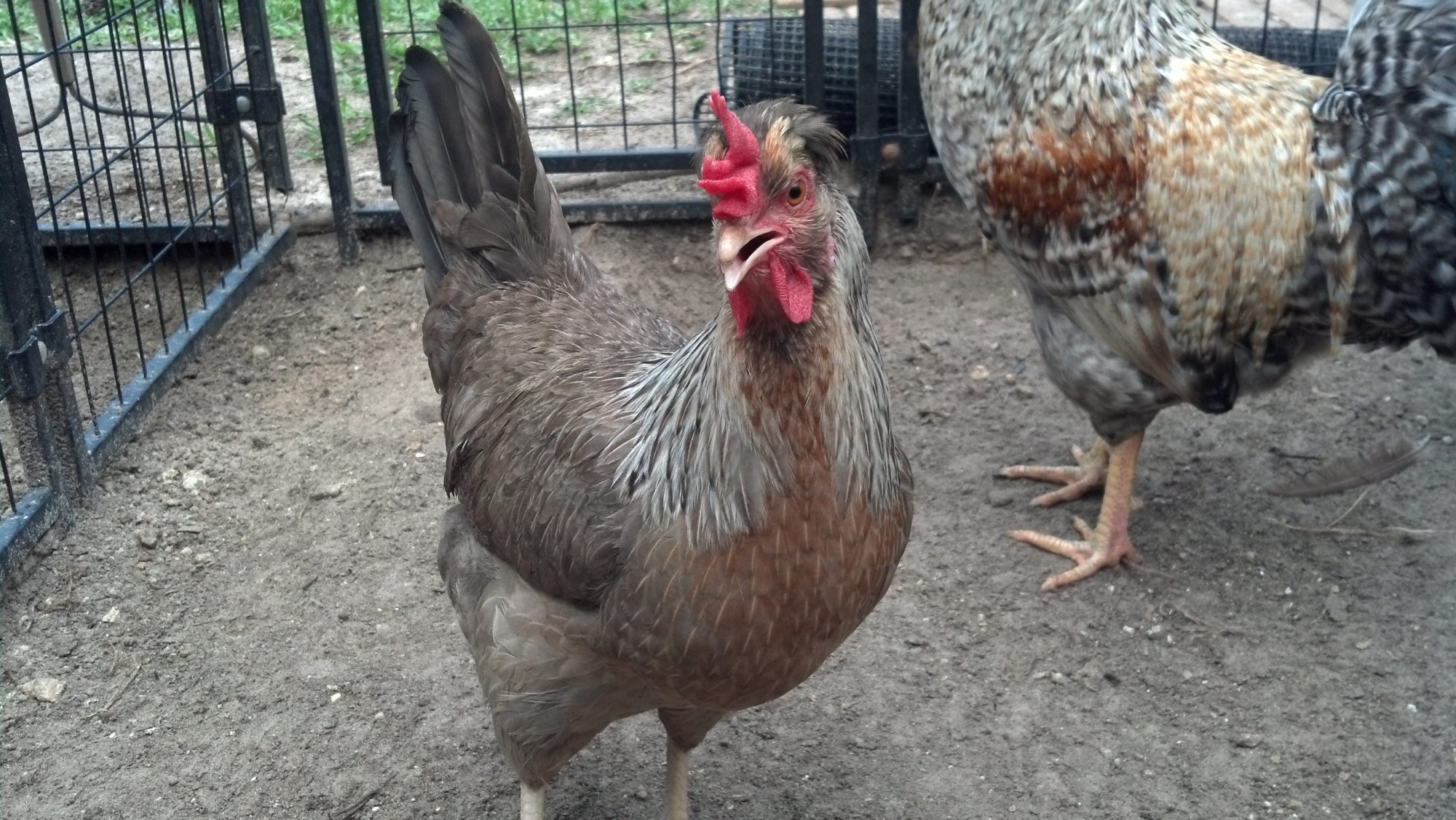 NPIP flock of free ranging Speckled Sussex. THese eggs have been a little thin shelled since he girls love eating the green grasses over the pellets, so I have added egg shells to their scratching areas. I will delay shipment if I feel the quality of the shell is not of sufficient quality. THese are the girls that help us weed!! We weed they grab the worms! lol A dark red with black and white at the end of the feathers. THese are a medium sized bird that lays a medium- light brown egg.