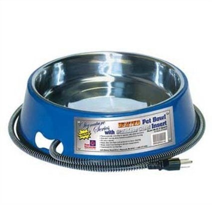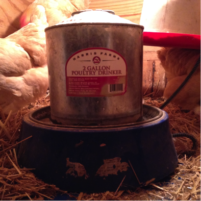 We caulked the rest of it though, so I guess that draft is just a bit of ventilation for them... I kept their water from freezing by setting their galvanized 2 gallon waterer in a heated dog bowl (like the one below) inside the coop. Worked perfectly! The water is ice cold, but this thing totally prevents it from freezing. yaay! Have never had any frozen eggs. We had temps as low as 14 degrees F. I did leave a 200 watt bulb on for them on those rare cold nights because I'm a worrier.The problem that I have with that kind of set-up, is that even though the water in the trough will stay thawed, the ice higher up in the metal waterer freezes, and the metal freezes to itself, so you can't open it! My kids and I bust two or three of those metal waterers because we popped the welds trying to unscrew the top. Maybe if I had two, and I kept one in the run, and one in the house, and then swapped them out every day........... That might work. But, I just went to a black flexible plastic feed pan (like what is used to feed horses, just over a foot in diameter and maybe 8 inches deep) and put a horse trough de-icer in it. I picked one that is safe to touch, and so is also safe to touch plastic. The black rubber pans are wonderful, you can kick the tar out of those things, and they don't bust.