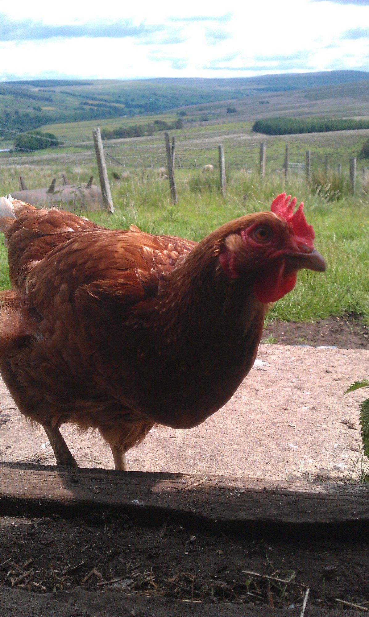 Bent down for one minute and Edwina was straight in there! If it was any other hen i would have pushed her off but she is growing her feathers back so if she didn't flap, i would have regretted it. So, i had to carry her all the way to the sheds!