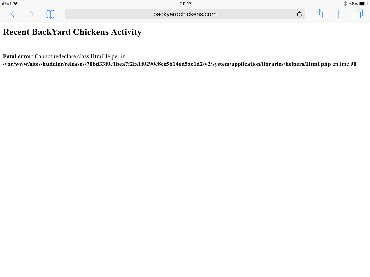 Fatal error: Cannot redeclare class FormHelper in /var/www/sites/huddler/releases/e622fabf831b381875e1856a48b5fa1d93ba4a3f/v2/system/application/libraries/helpers/Form.php on line 14