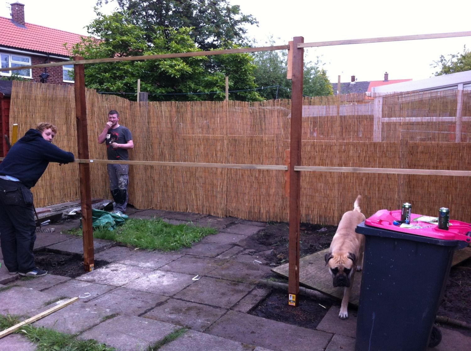 The bamboo screening one for prettiness , and two to keep my nosey neigh bour out lol (bob taking a look our bullmastiff)