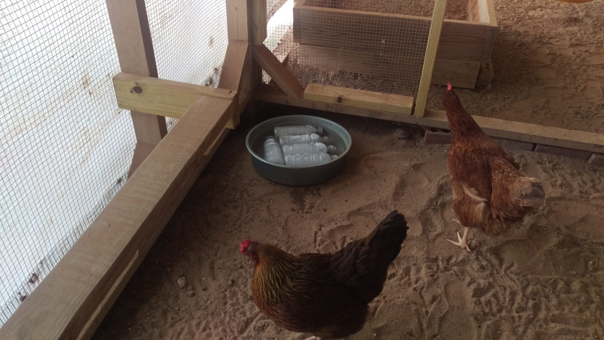 hi everyone. the past few days have been in the 80s here and it's not supposed to cool down. one of my chickens has been panting a little bit which is what got me concerned about the heat. we don't have electricity in out coop so I can't put a fan out. what else could I do? I have ice in their water and a small pool for them. their whole run is in the shade.