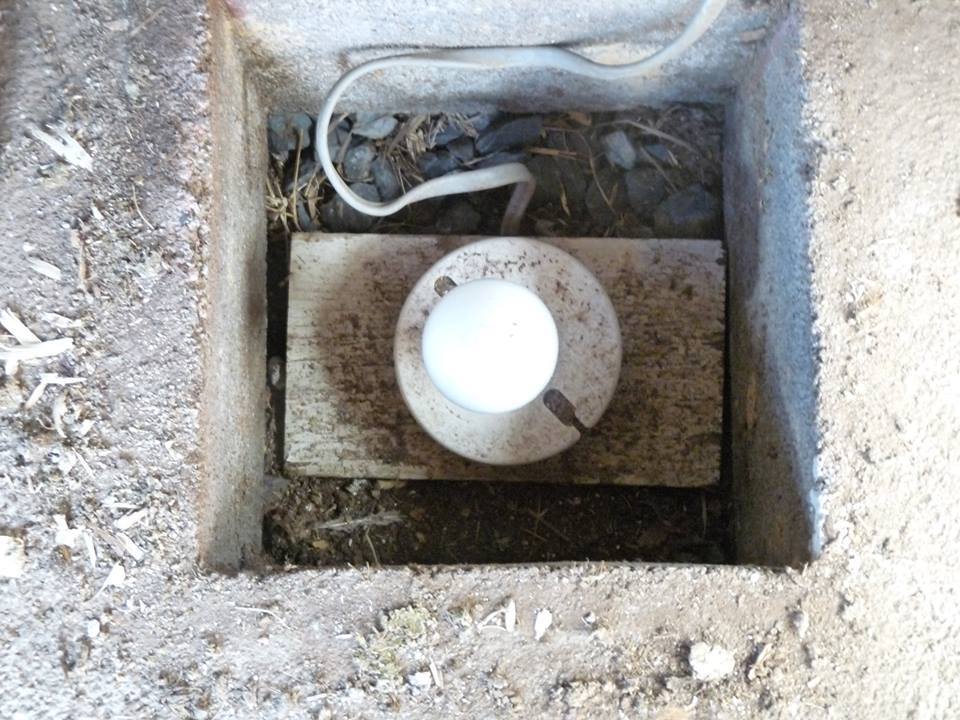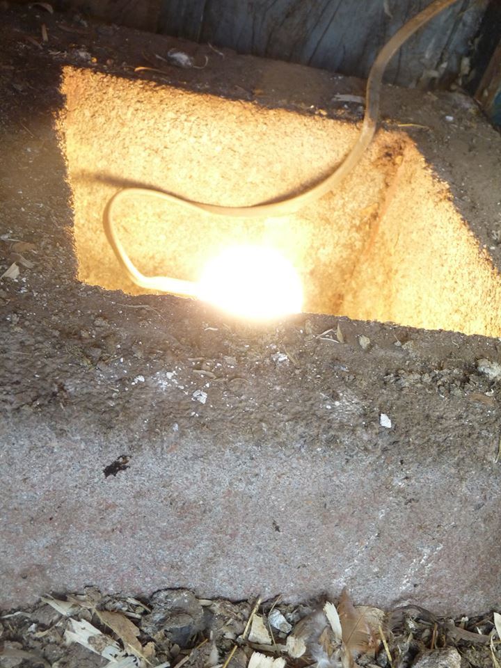 I intend to move 1 light directly over the water container. I had a sun room with these "heat lamps" before, and their infra-red light heats only what it touches...iows, it doesn't heat air. So the trick is to keep it high enough that it doesn't try to heat the mulch on the floor, only the watering container. To that end, I'm making a concrete light box to sit the watering container on. I won't be putting a bulb in it, unless I find the above lighting isn't sufficient to keep things from freezing. Should that happen, my plan is to move the heat lamp bulb into the concrete lightbox and heat from below.