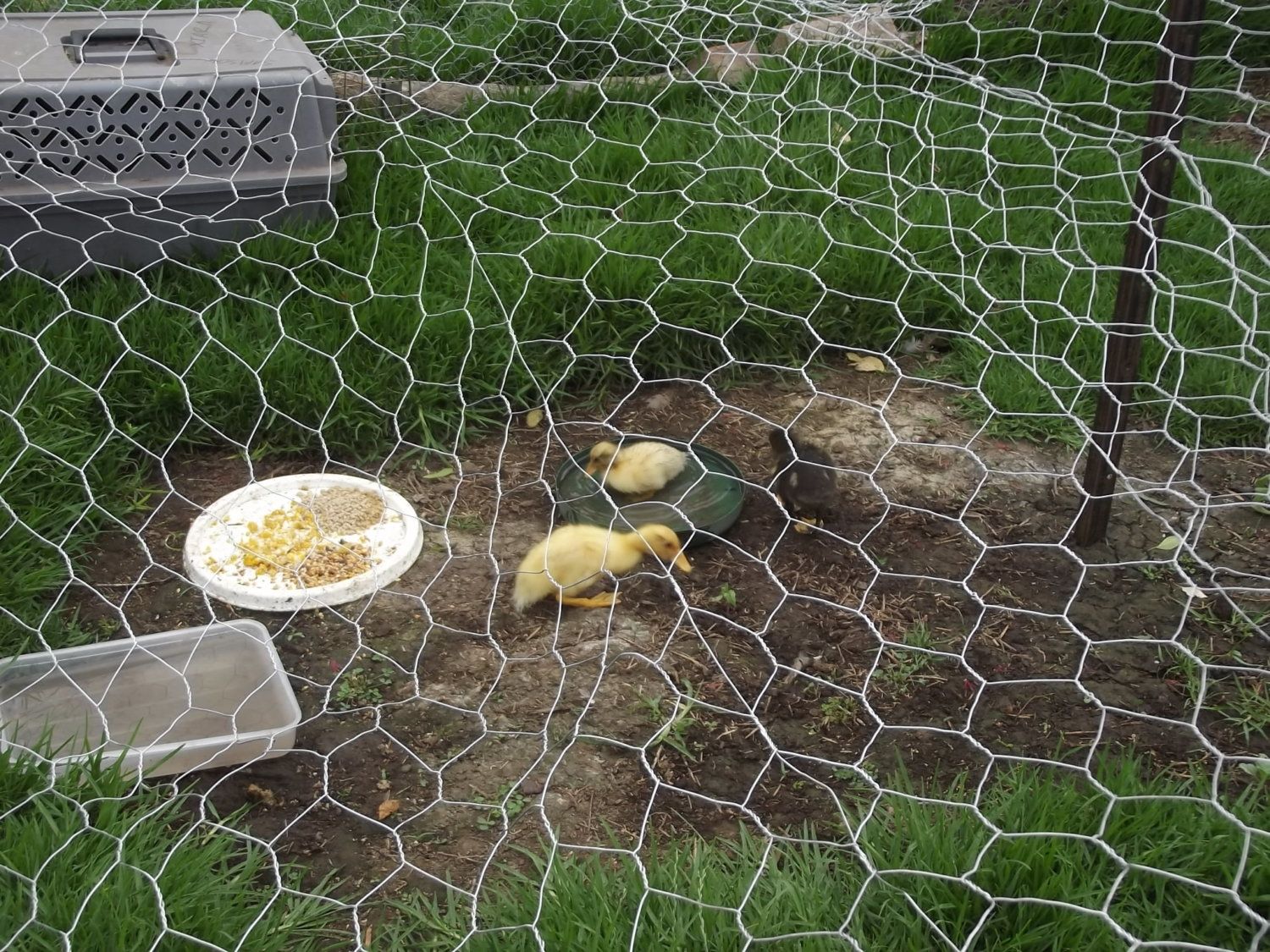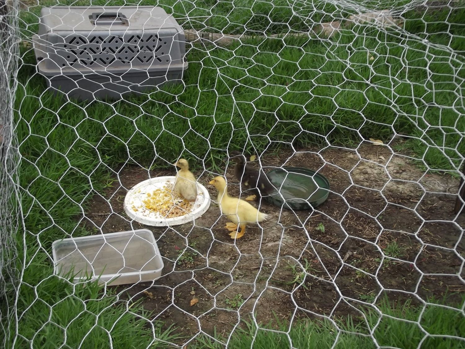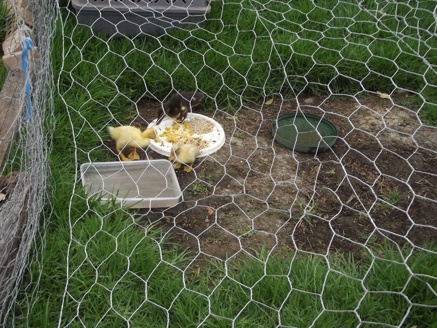 I didn't realize how strongly they had imprinted on me - As soon as I tried to walk away there was a flurry of running around and peeping! My resident crow gave me a scare by getting up close but I think he was just checking things out. Im really paranoid, cant leave the pen alone for long. Leelu has been hanging around, I wonder if she knows the littlest is her baby?