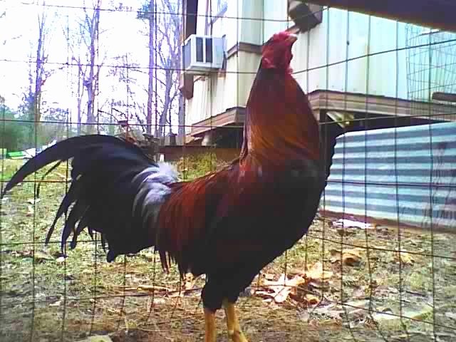 All three are walnut combed, red eared, fairly tame (number 1 is for sure, I can walk up to him and pick him up usually pretty easily even on the free range sometimes). All are a little small for the required weight at the moment, but they aren't as far off as some others; they all three also seem to have fairly nice heads when observed in person.