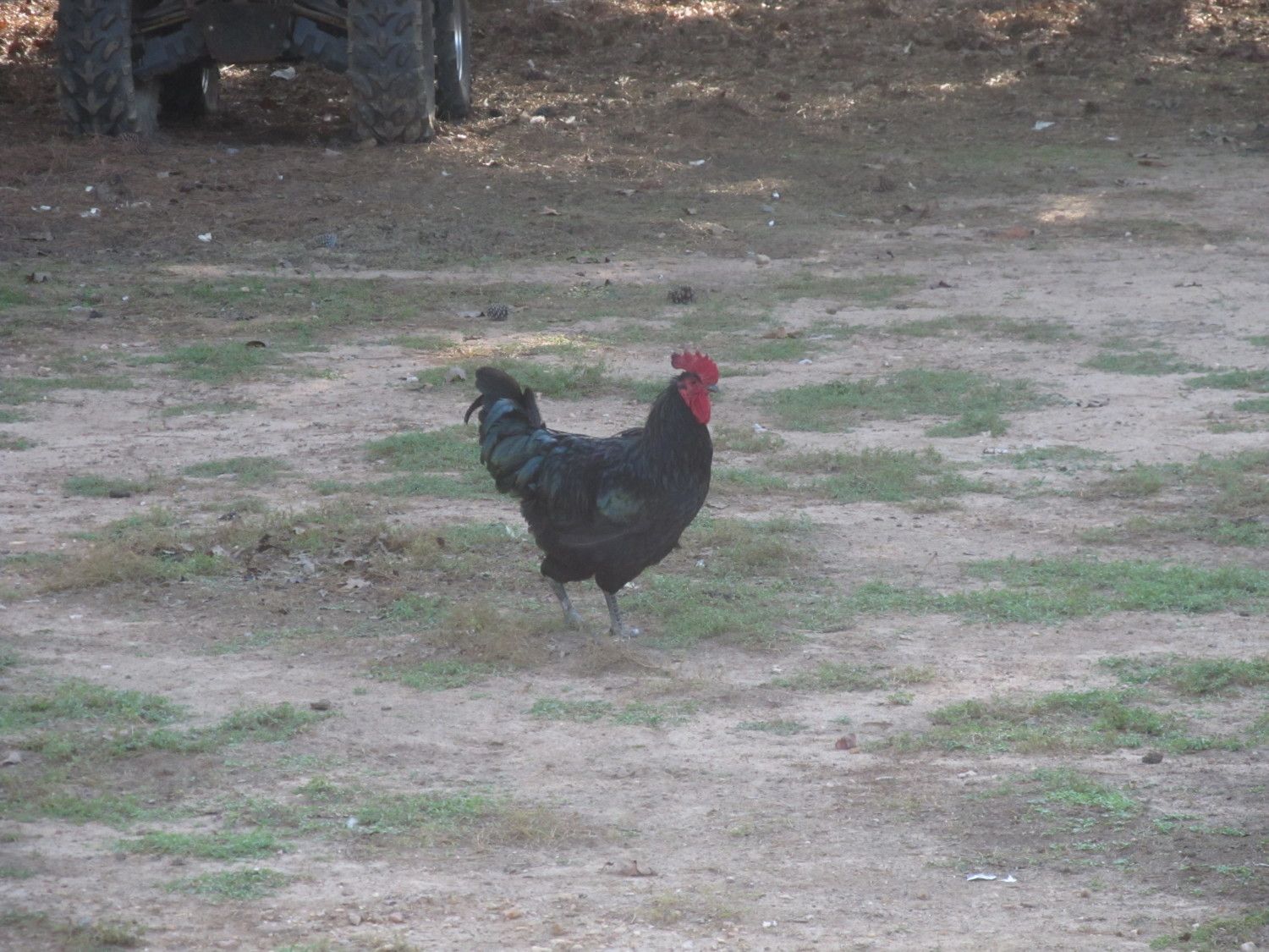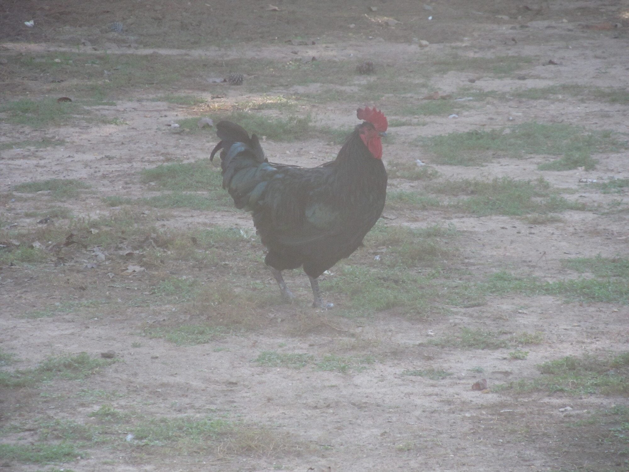 The hens egg production has been slow and very bleh. So we looked on craigslist for a few days. We saw an add for Free Roosters, and over 10 of them! We gave them a call and they said "We have a Black Australorp, 2 mixed roosters, a bantam rooster, Barred Rocks, and a red rooster." My mother called them back and told them we want the Black Australorp Rooster. Since, we had an Australorp hen already. We go to go get him, and the poor couple had someone roosters most were bald on the butt. And they were running loose as well. So here he is! And the hens egg production has increased over night. He also respects a humans space and goes to the run when we gather eggs. He was hatched in February! Click the images for a bigger view.