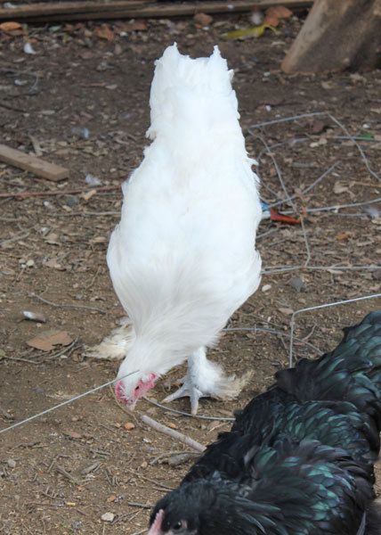 The first pics are of my white cockerel who hatched from one of your eggs, Mikaela. He is 21 weeks in these pics. You can see how big he is compared to the blue pullet and one of my Silver Penciled Plymouth Rock pullets. Both of the pullets are several weeks older than him. I have still to get a pic of him with his tail up but I'm trying. My daughter wants to name him Gandalf. (Guess what trilogy we just watched?!)