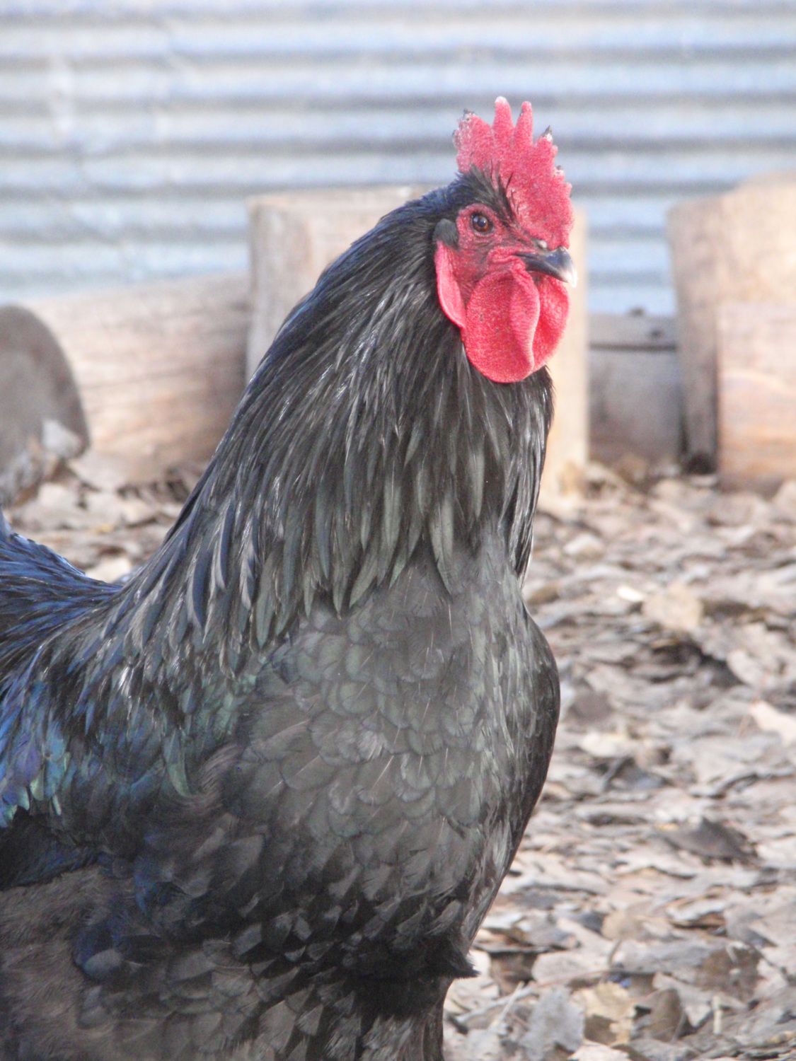 He has a lovely sheen and may do well in some local 4H and FFA shows. And even some county fairs! I'm sure people who walk by will be very impressed by his size compared to all the other birds!