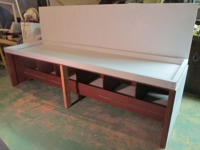 ^^ new roost/poop board/nesting boxes husband built for the new area..It's 8ft long will sit against a wall about 30" wide