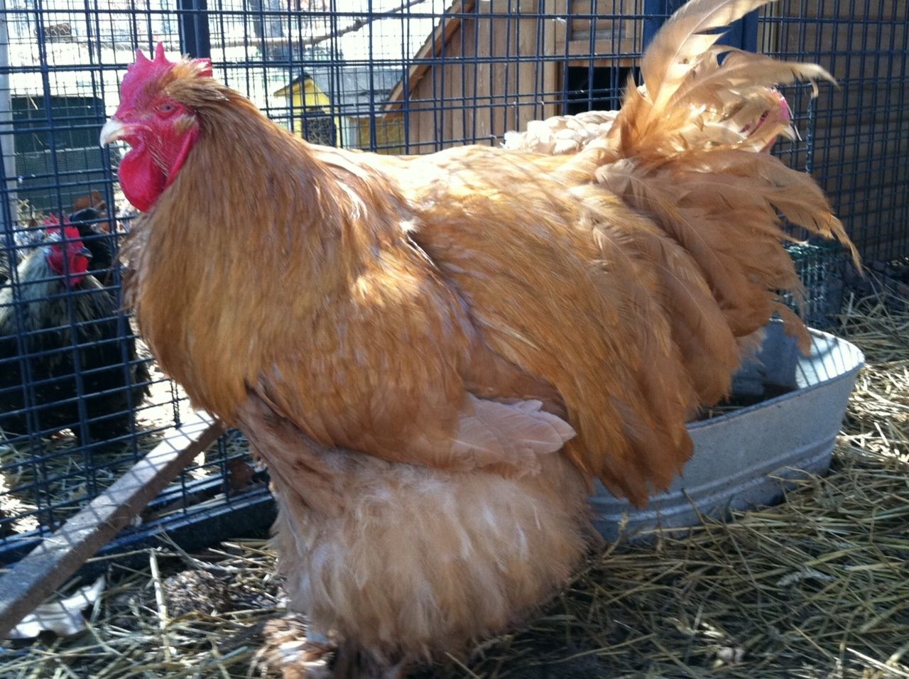 LF = My roosters are (1) buff & (1) Blue but I can say I beleive the buff is 99.9% the daddy. My hens are black, buff, partridge & white. The all mixed (all LF Cochin) but I wouldn't be able to tell which eggs come from the black ones